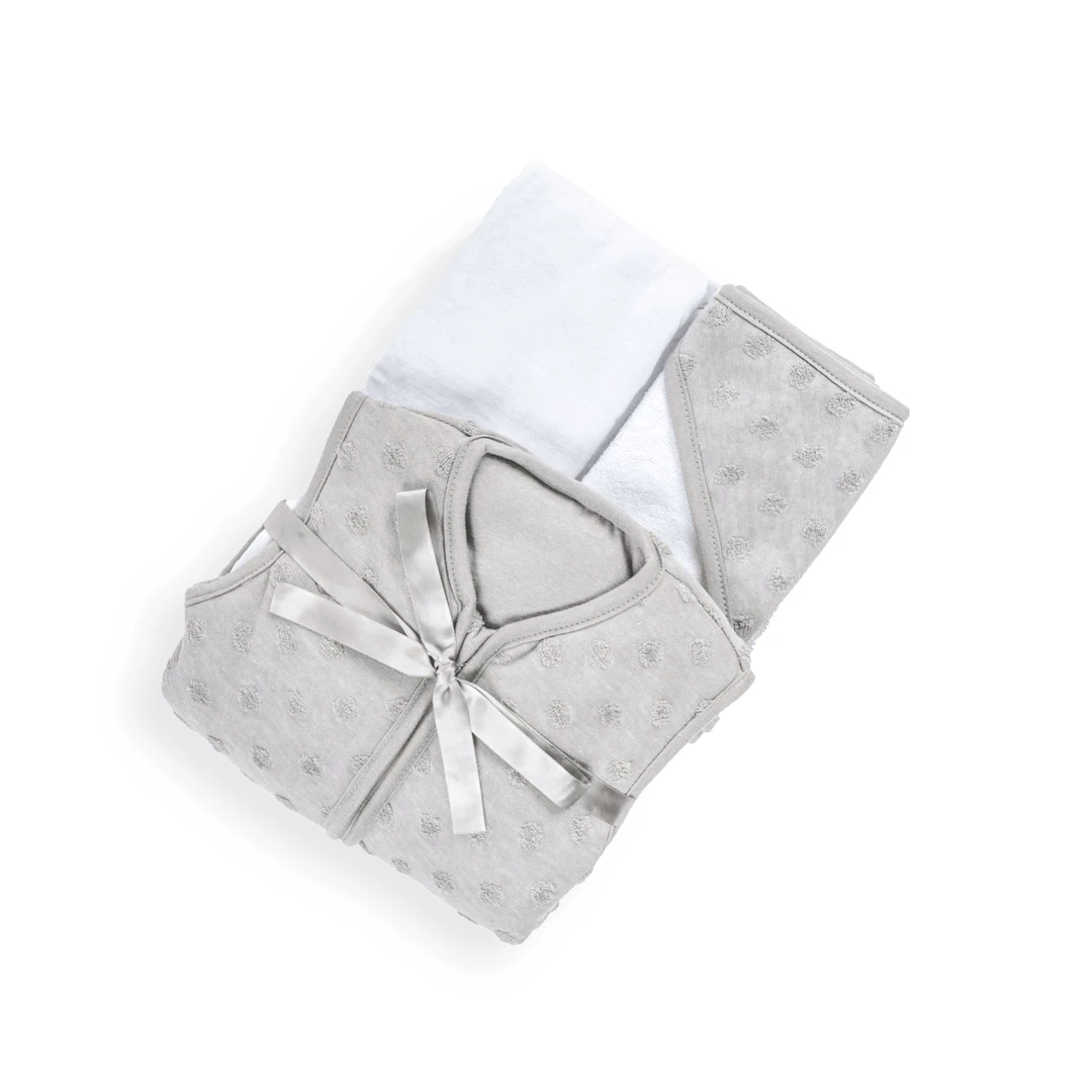 This bundle of bath and bedtime accessories creates a relaxed evening routine of cuddles in super soft towels and snuggling down with a cosy blanket. The Terry Dot fabric features raised, beautiful cloud-like little circles for both style & comfort. (TIP: Restless babies will find playing with the fabric very soothing helping them settle for a refreshing sleep.)
