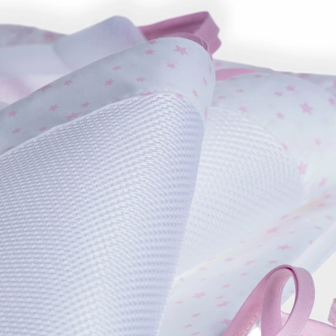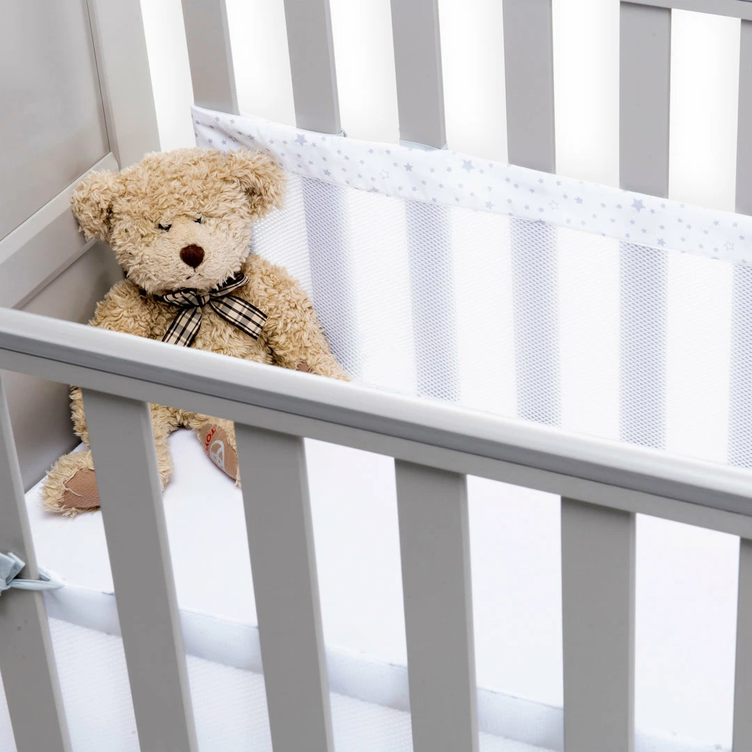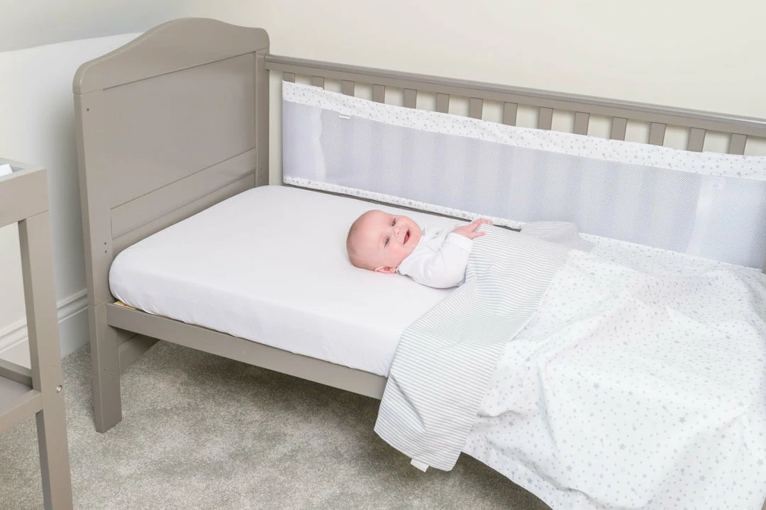 The breathable cot liners have a soft, padded mesh to keep little arms and legs securely inside the cot. The soft padding protects your little one from minor knocks and bumps and the mesh fabric helps to reduce the risk of suffocation and encourages airflow to keep your baby cool throughout the night.