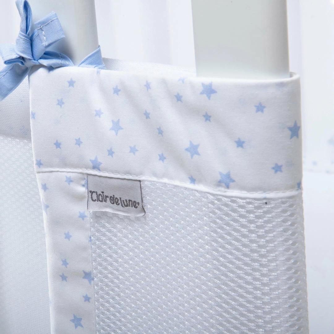 *Bedding only, cot is used for illustrative purposes only. This Clair de Lune cot bumper is designed to fit most cots; securely tie it to the head of the cot and regularly check that it is securely tied in place. Remove once baby can sit up unaided.