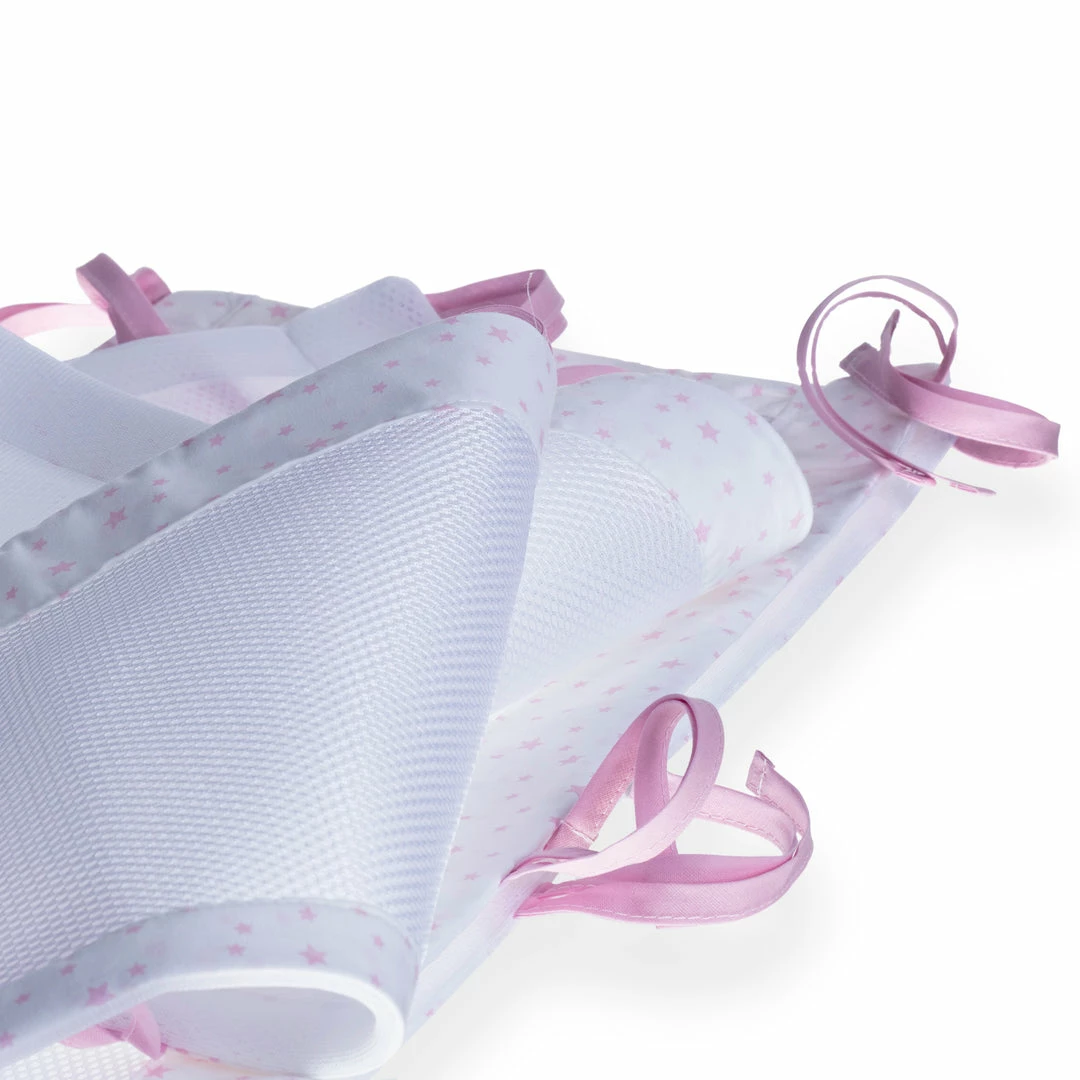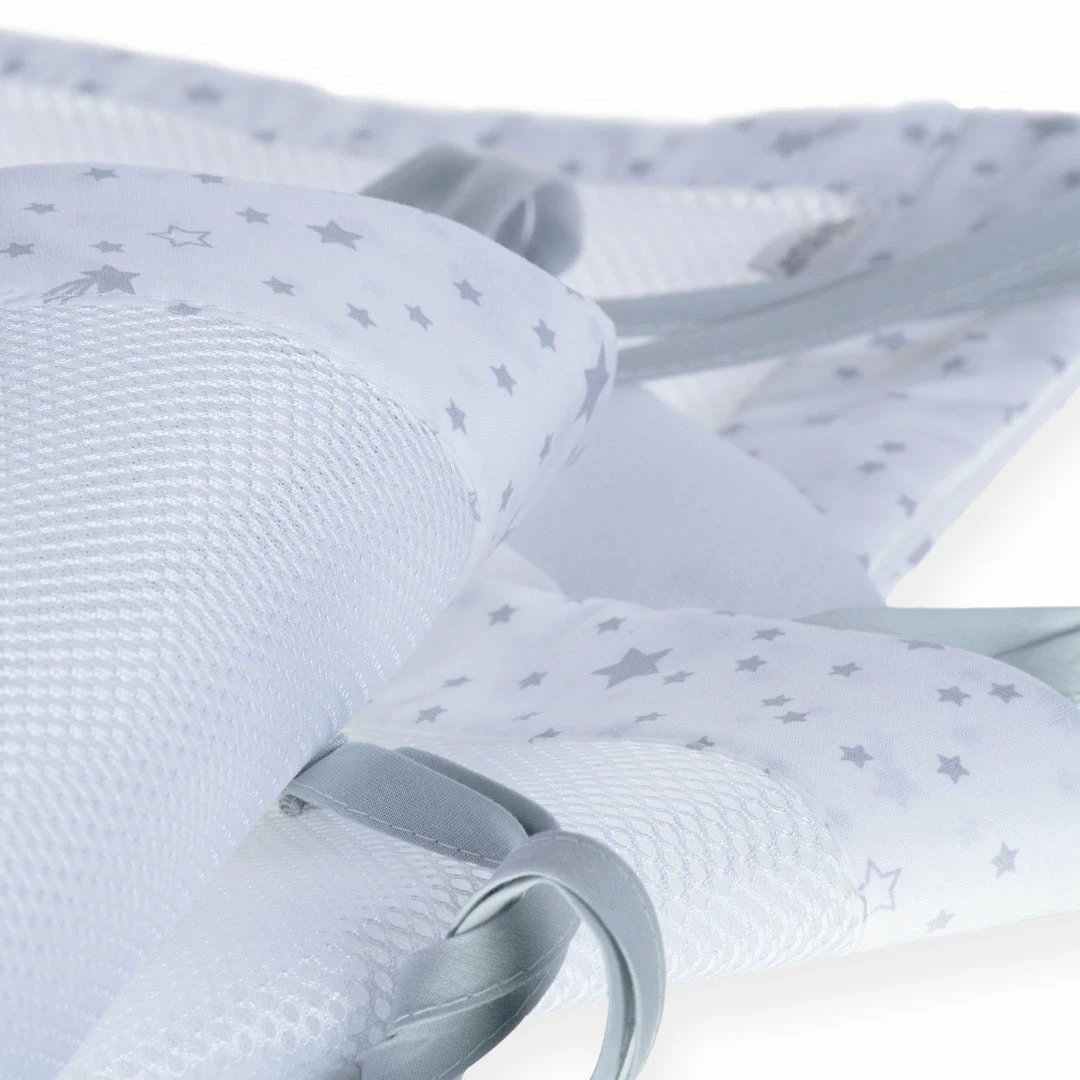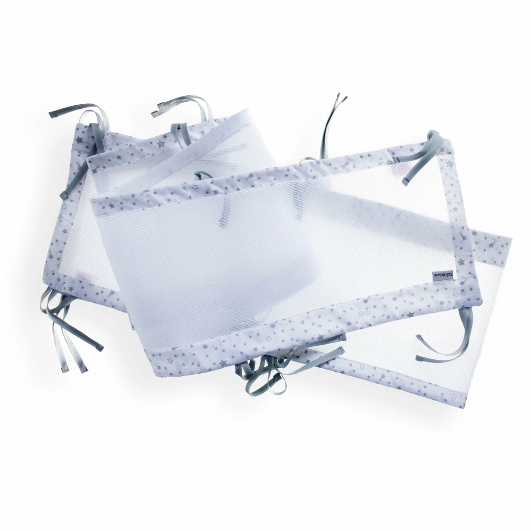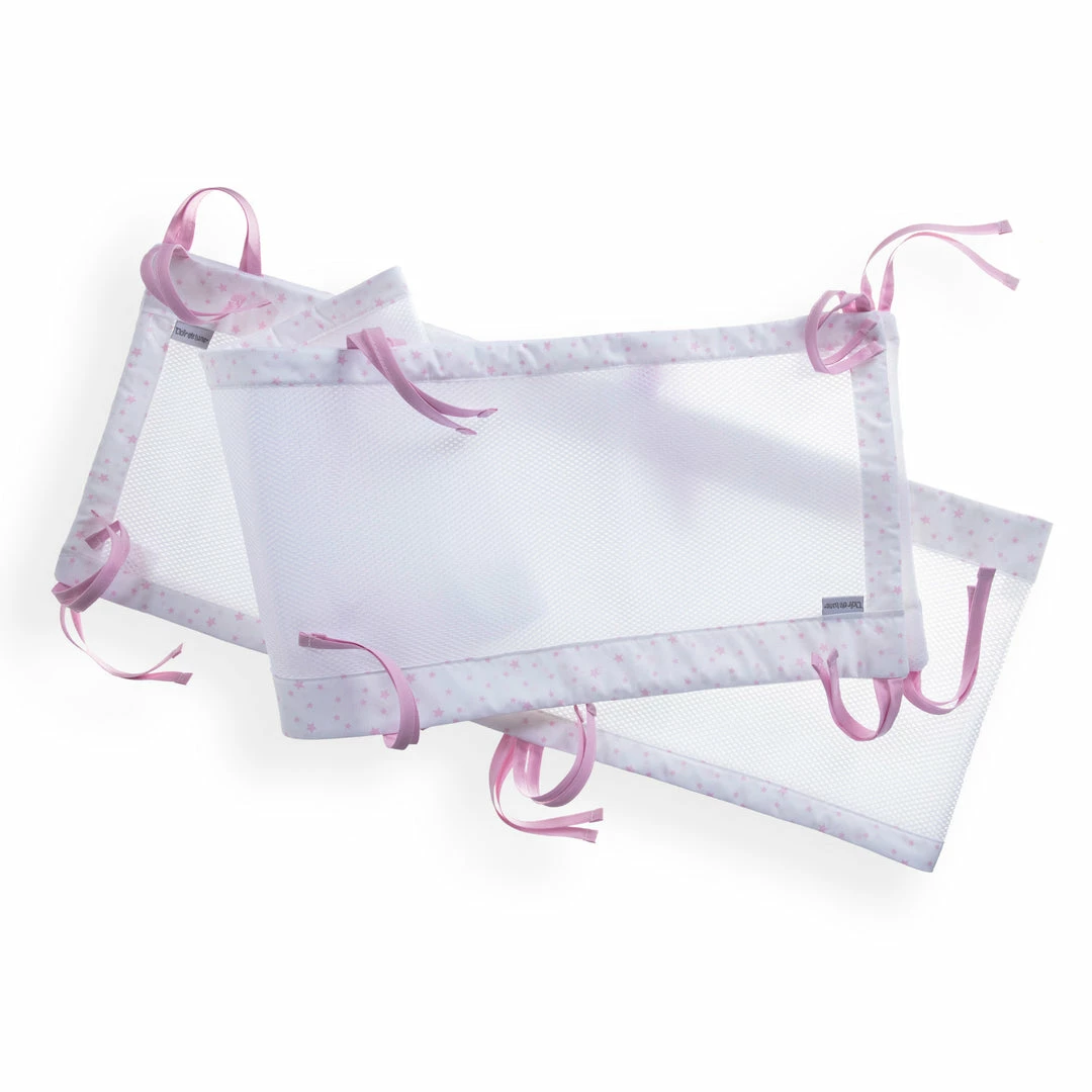 The breathable cot liners have a soft, padded mesh to keep little arms and legs securely inside the cot. The soft padding protects your little one from minor knocks and bumps and the mesh fabric helps to reduce the risk of suffocation and encourages airflow to keep your baby cool throughout the night.