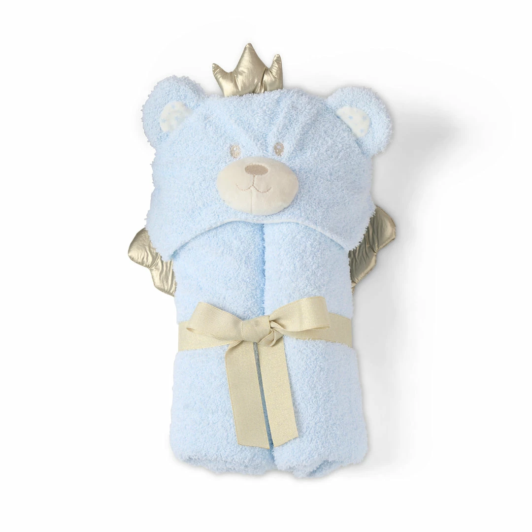 Made from super soft plush fabric, your little one is sure to fall in love with our cuddly Little Teddy blanket complete with an adorable face on the hood with metallic crown and wings on the reverse!