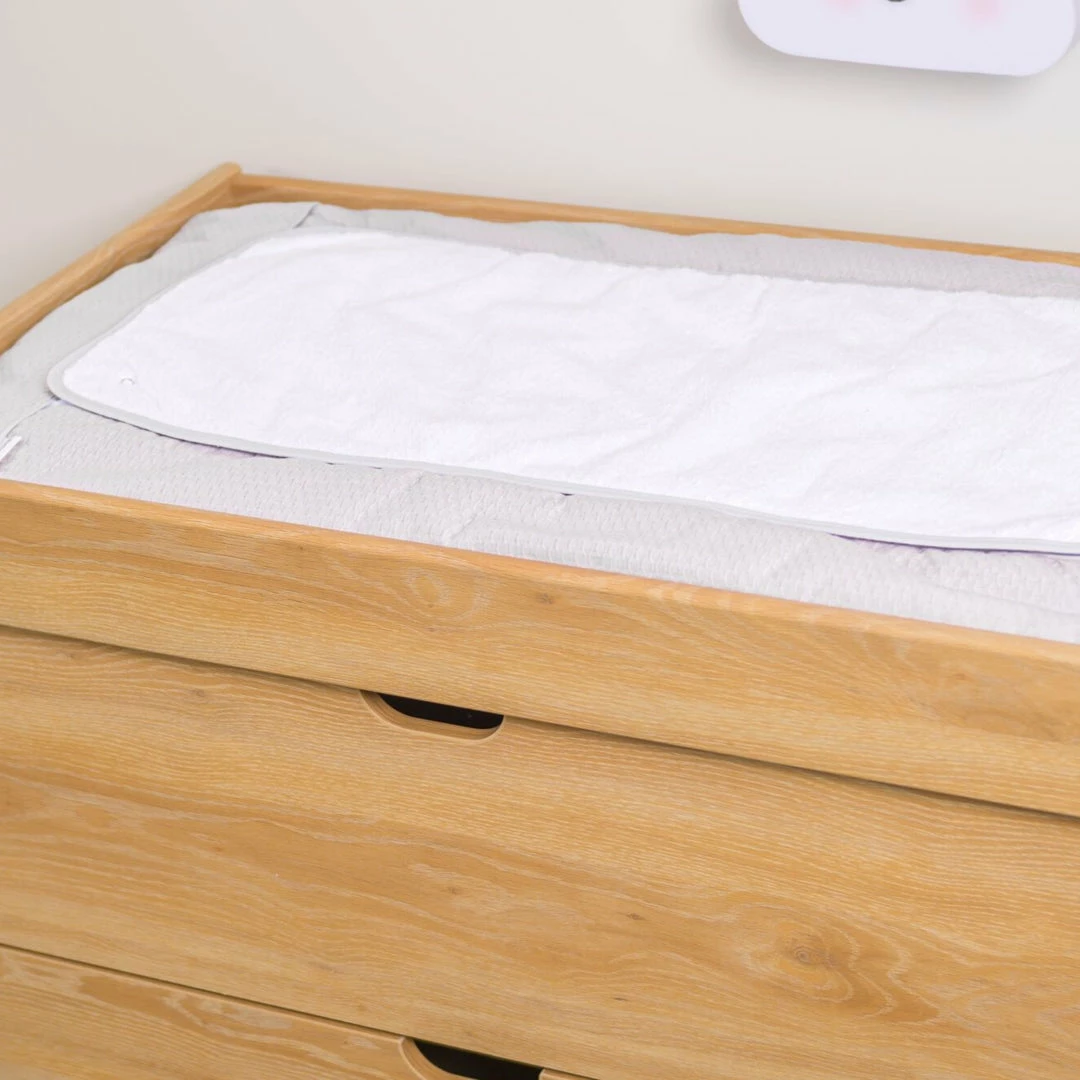 A unique design made with two layers of towelling so it can still be used when the top layer needs washing.ย Parent-friendly – the entire changing mat can also be put in the washing machine!