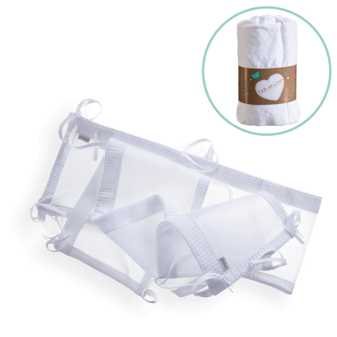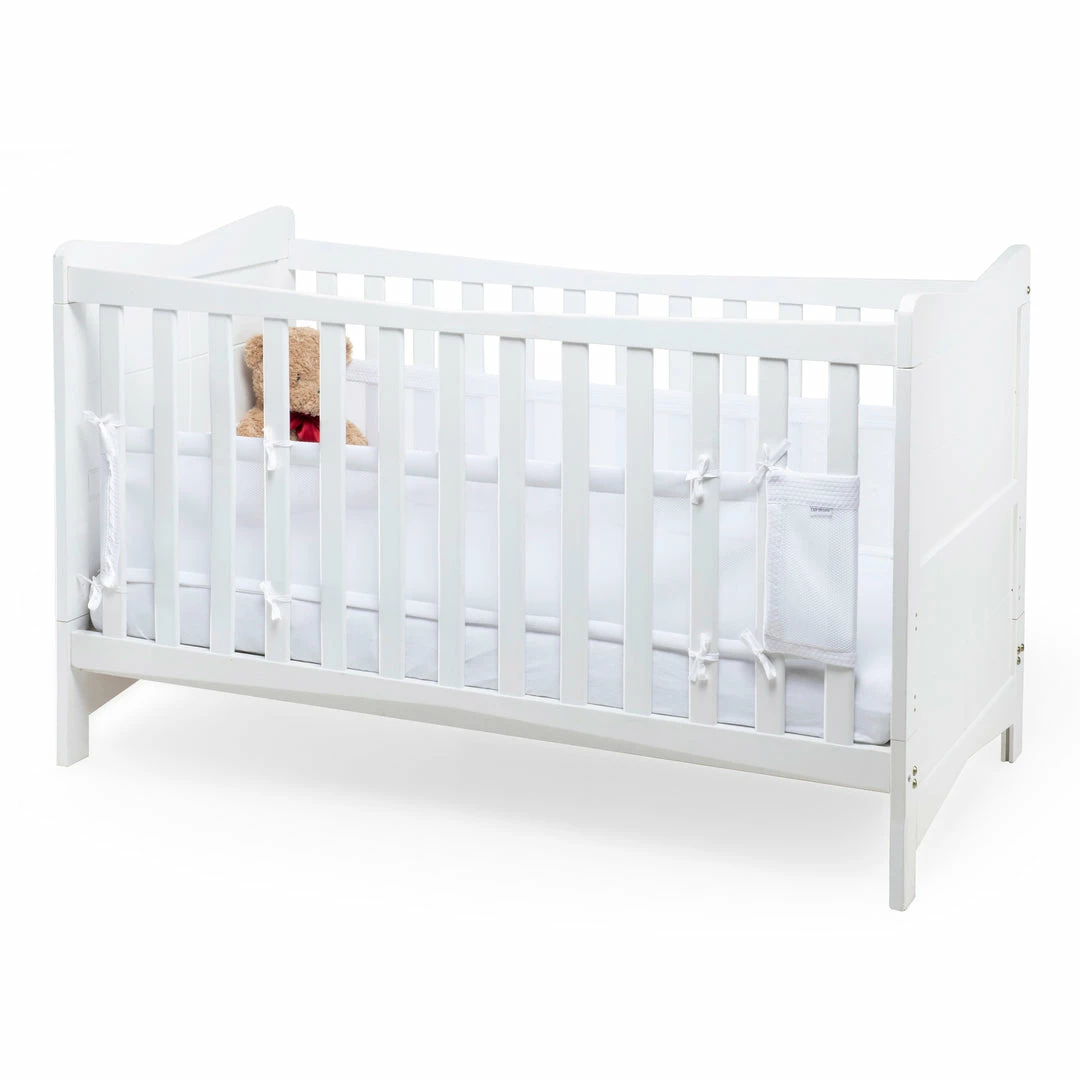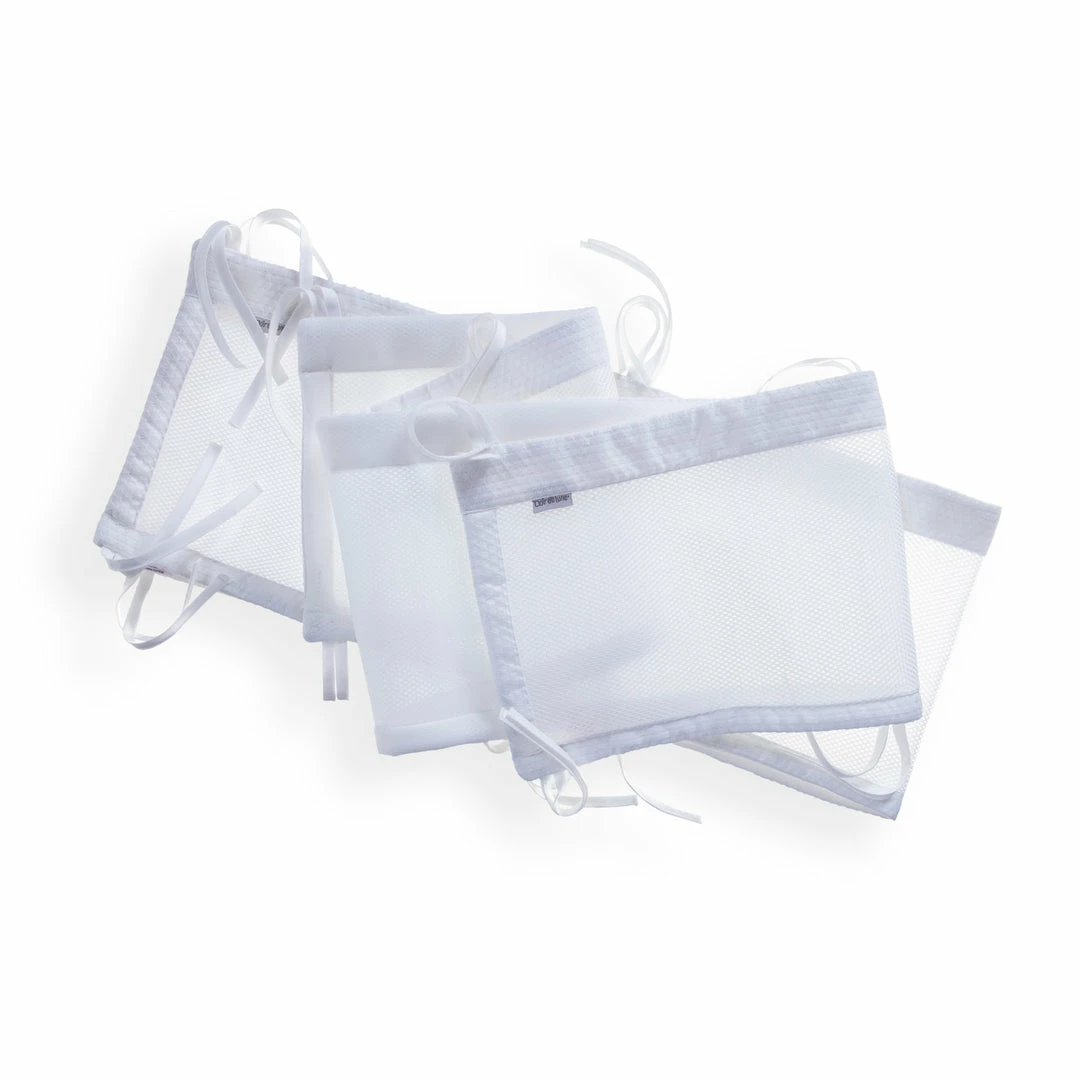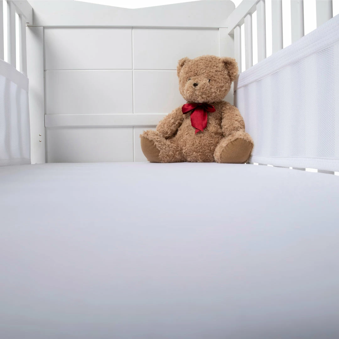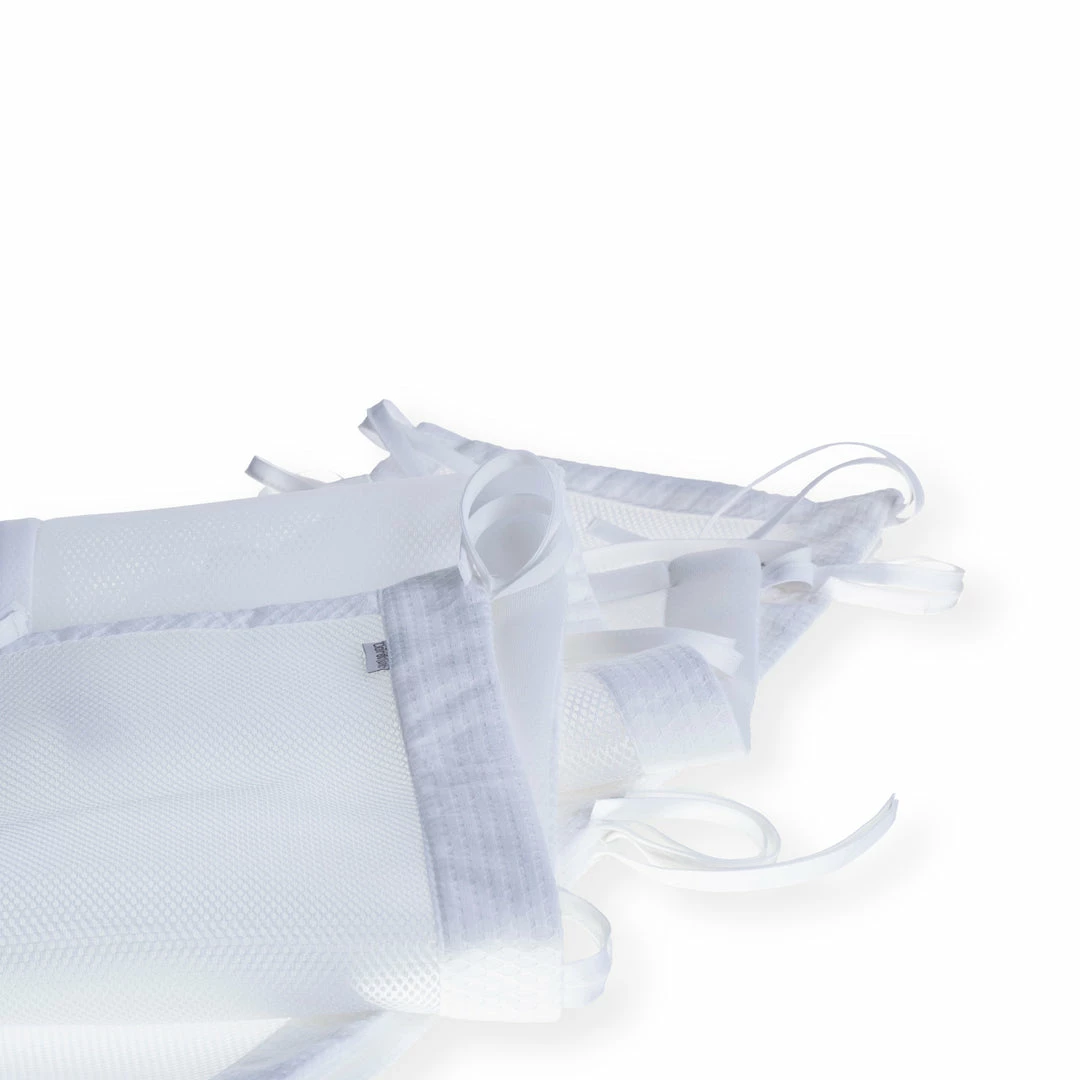 The breathable cot liners have a soft, padded mesh to keep little arms and legs securely inside the cot. The soft padding protects your little one from minor knocks and bumps and the mesh fabric helps to reduce the risk of suffocation and encourages airflow to keep your baby cool throughout the night.