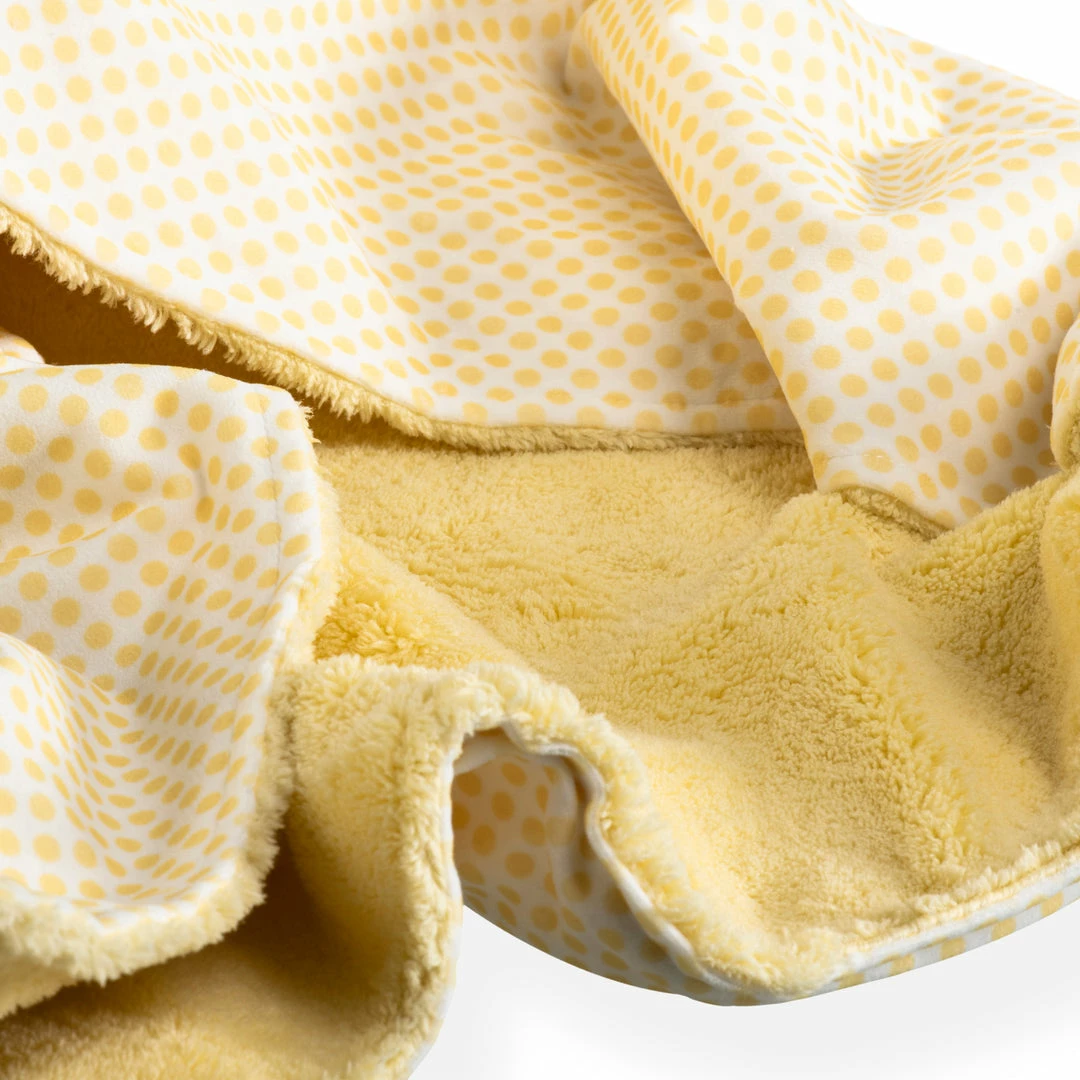 โข A dual-layer baby blanket with a polka dot fabric reverse for the ultimate luxury.