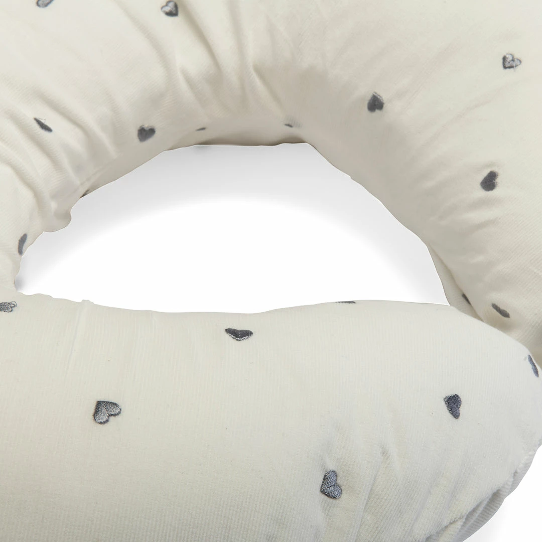 A multi-functional nursing pillow made from super-soft cotton fabric, itโs crafted with lots of love in Great Britain and features a beautiful embroidered grey heart motif.