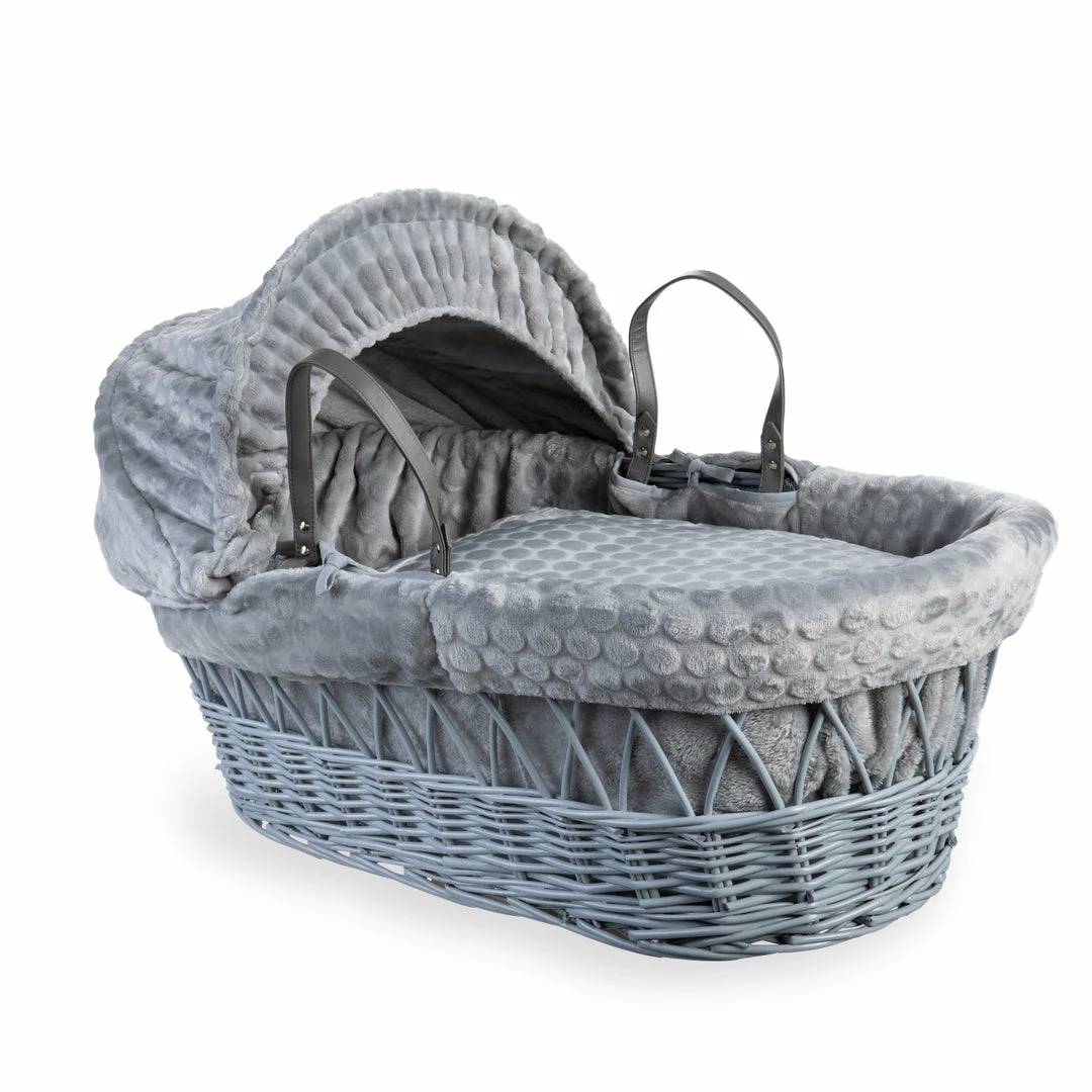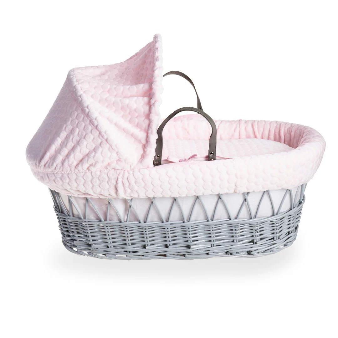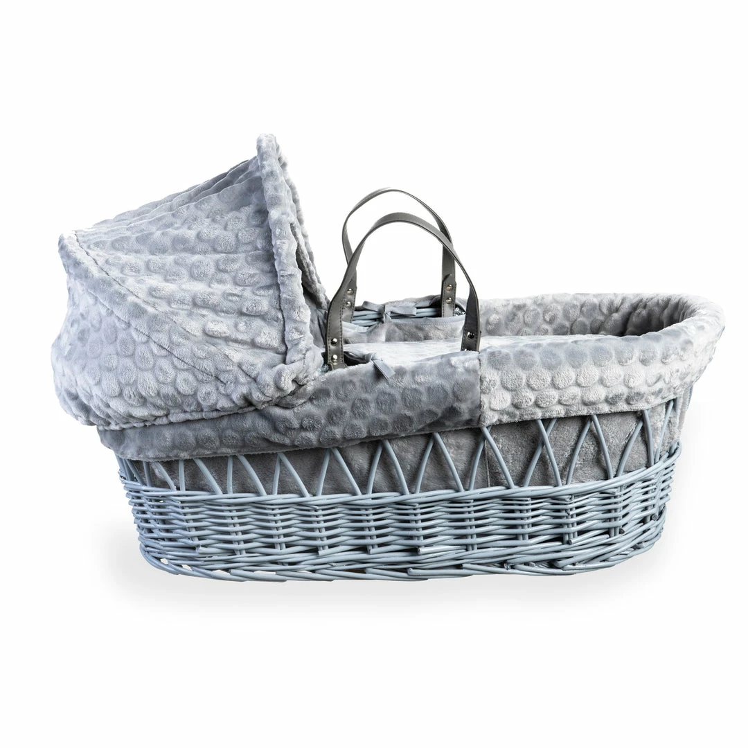 A beautiful Moses basket made from soft, plush subtly patterned Marshmallow fabric, will complete any nursery perfectly.