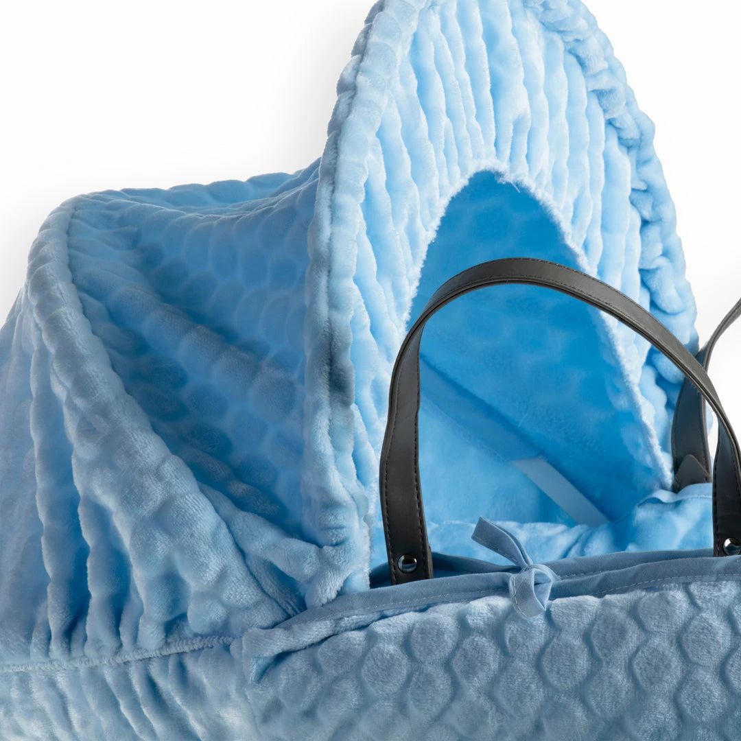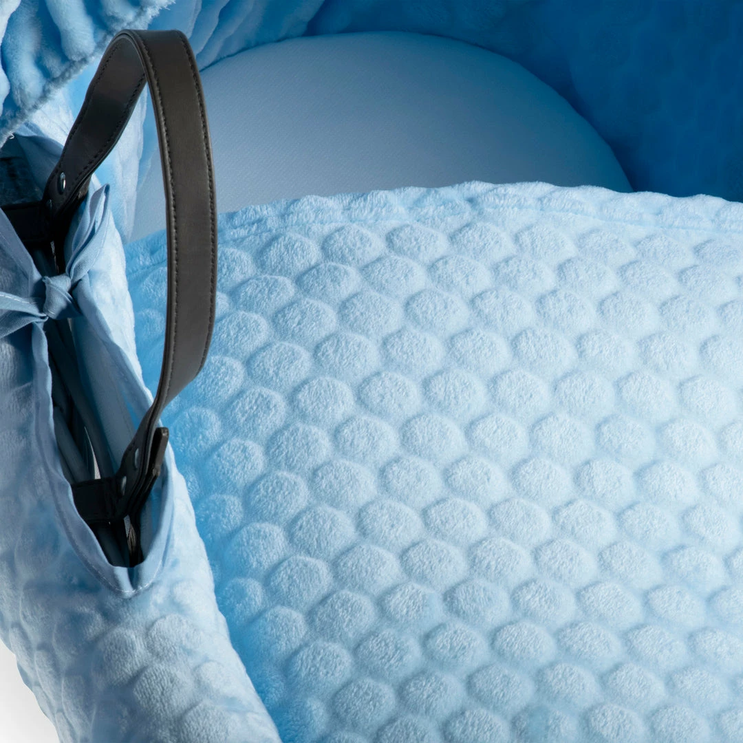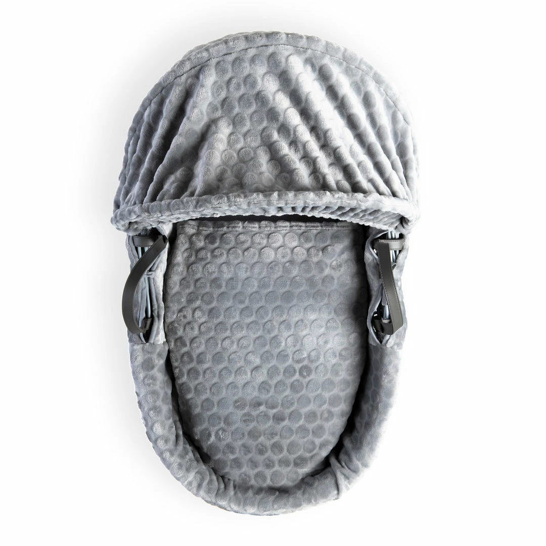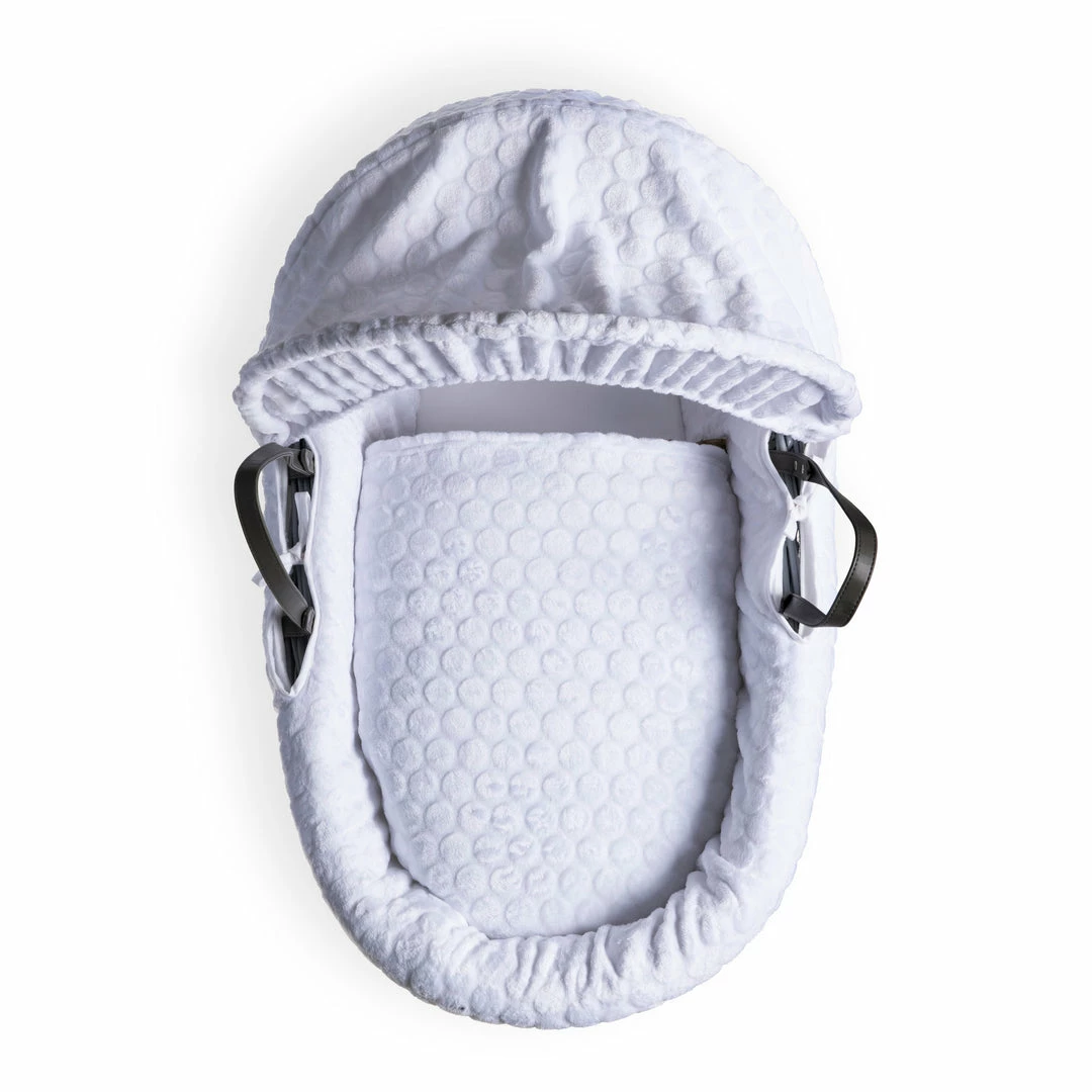 A beautiful Moses basket made from soft, plush subtly patterned Marshmallow fabric, will complete any nursery perfectly.