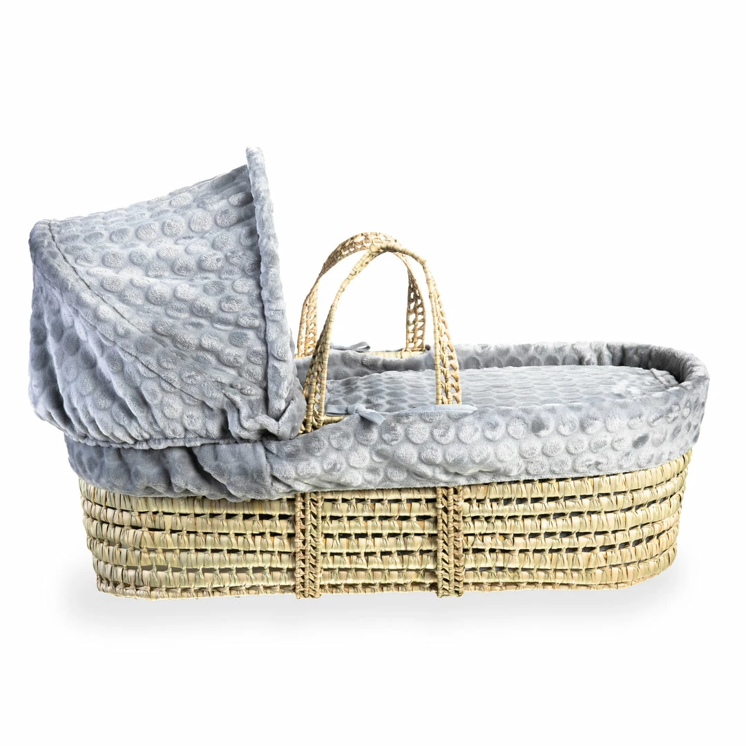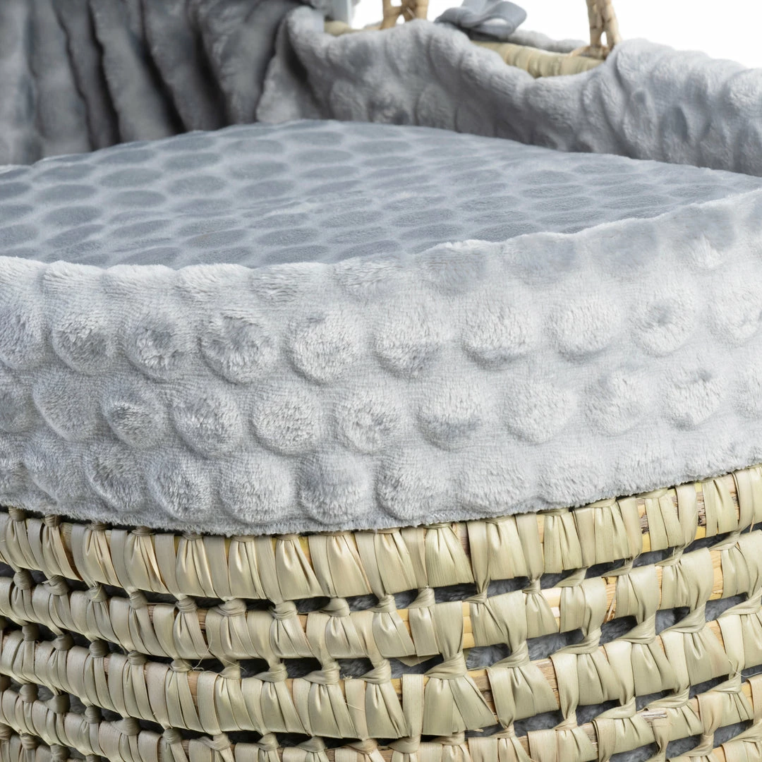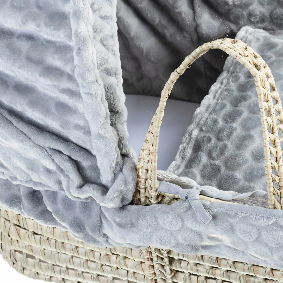 This beautiful Moses basket is made from soft, floaty fabric and perfectly complements any nursery. The Moses basket quilt/coverlet is reversed with soft knitted jersey fabric for the ultimate comfort for your baby.