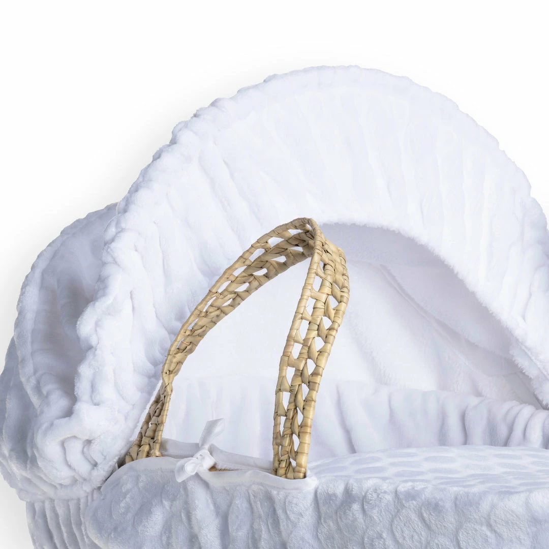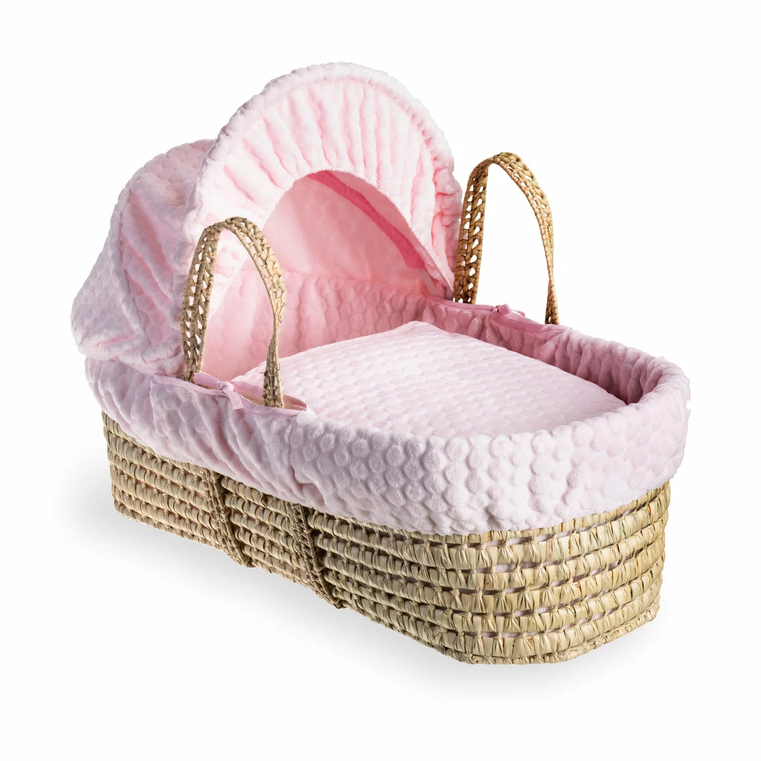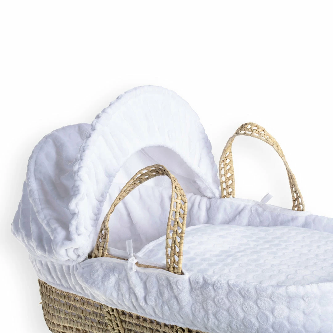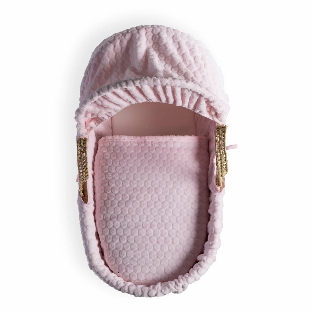 This beautiful Moses basket is made from soft, floaty fabric and perfectly complements any nursery. The Moses basket quilt/coverlet is reversed with soft knitted jersey fabric for the ultimate comfort for your baby.