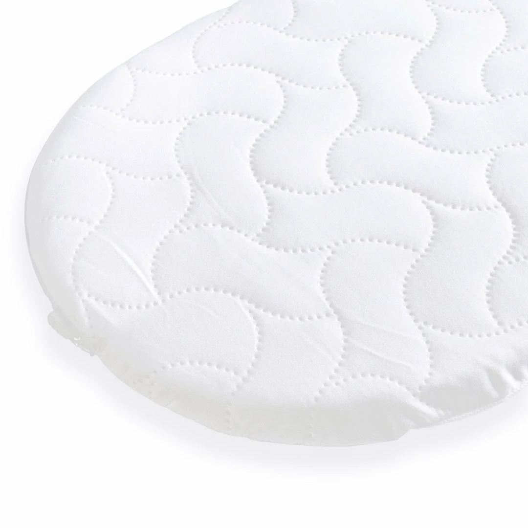 The luxury quilted microfibre cover is hypo-allergenic and is also air-permeable for comfort. You can easily remove the cover from the mattress for washing. It’s water-resistant, excellently moisture-resistant, high-temperature resistant and durable – an ideal sleeping environment for your newborn baby. It works just as well as a waterproof protector! You can also wipe the cover clean for any small spills. Add our Fitted Moses Basket Sheets to go over your mattress for double protection for your Moses basket mattress. Click here to add to your order.