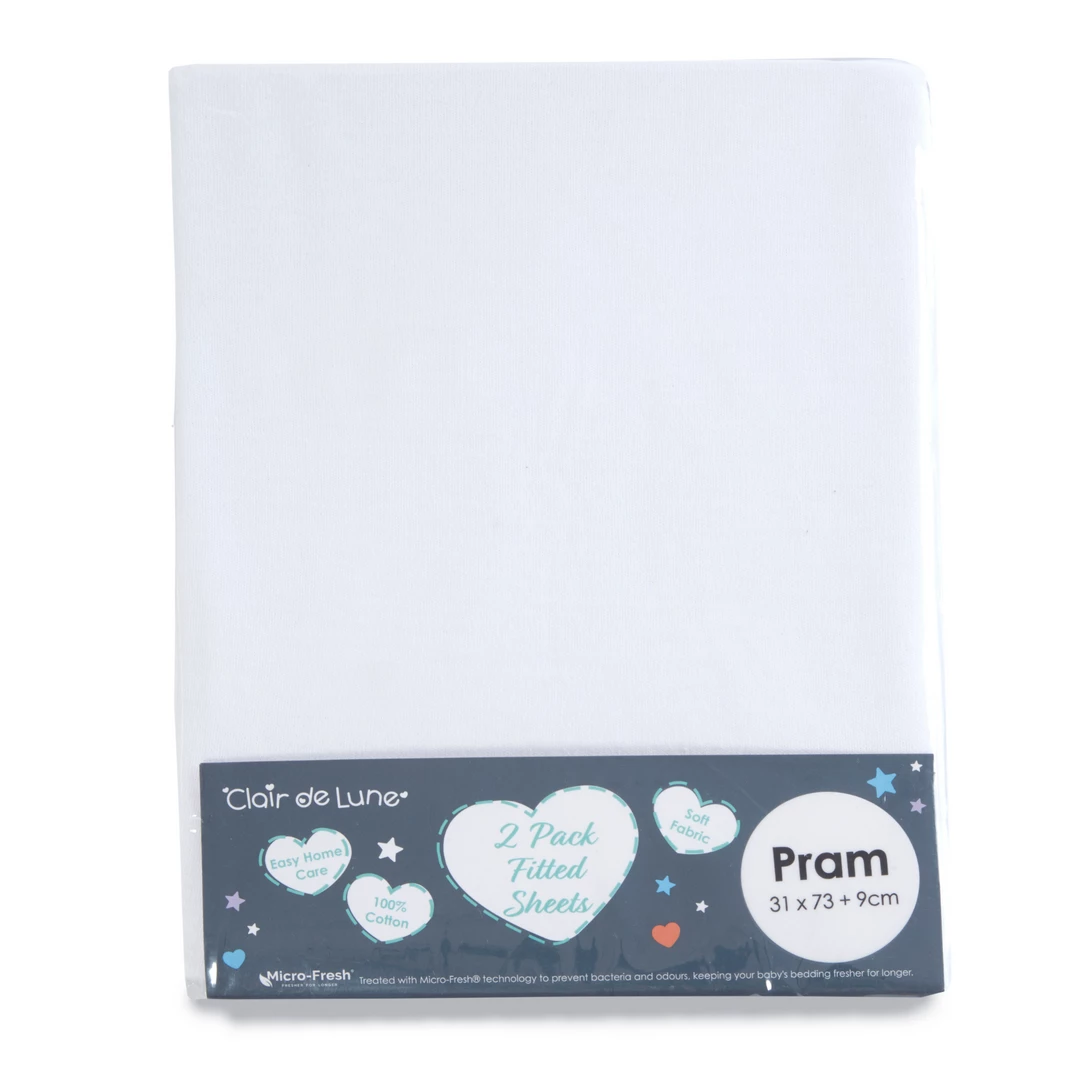 Deals 🧨 Clair De Lune Micro-Fresh® 2 Pack Fitted Pram Sheets – 85.5 X 36 Cm Soft Sheets 👍