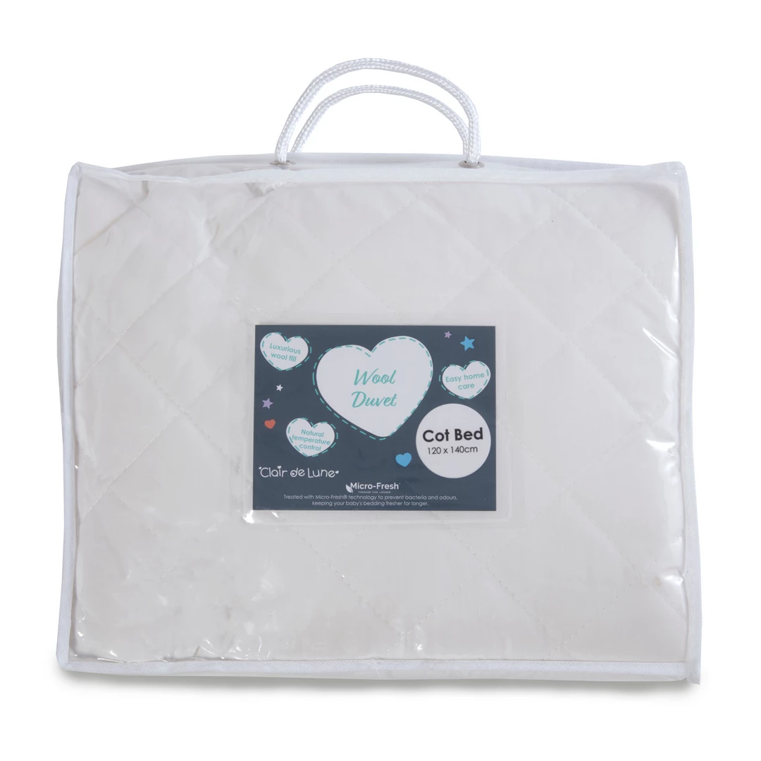 With a super-soft, 100% cotton outer and insulating wool filling, this duvet is the perfect addition to your child’s cot bedding. The naturally breathable wool filling is also moisture wicking for the ultimate in comfort.