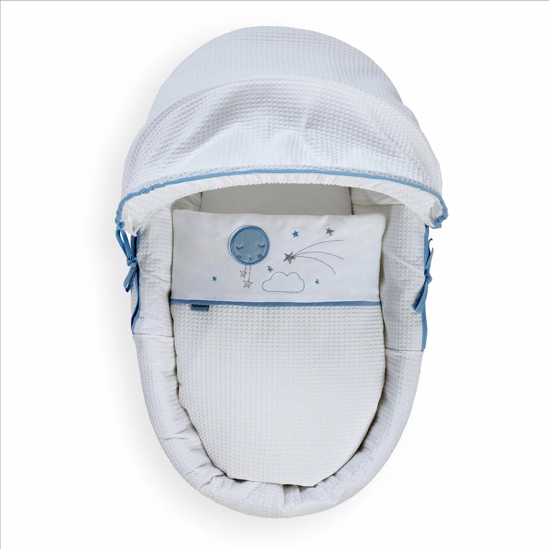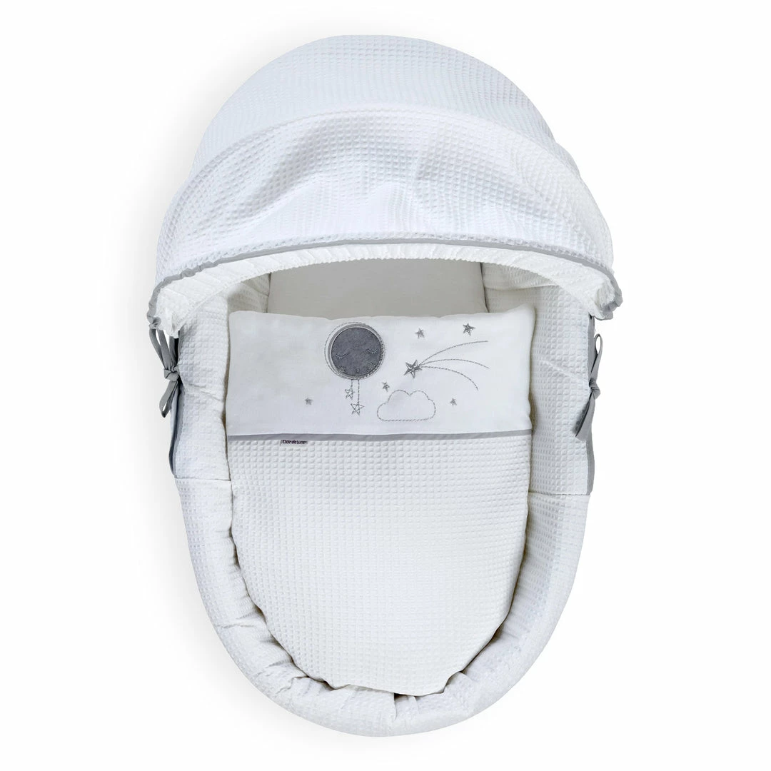 Are you expanding your family and expecting a second or third child? The Over the Moon Moses Basket Bedding set saves you the trouble and expense of buying a new Moses Basket as you can simply and easily re-dress your current Moses Basket with the sumptuously soft dressing. Easily rejuvenating your nursery with a new look.