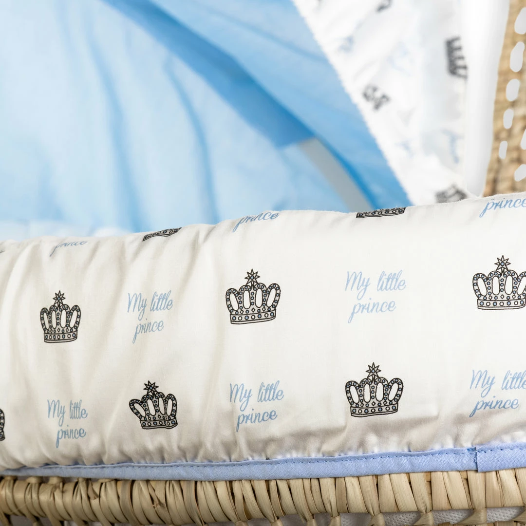 The Moses basket is made from sturdy handwoven Palm Leaf with integrated handles.ย This stunning baby basket is hand-dressed in the UK by our devoted team and features one of Rachel Rileyโs most iconic prints; a precious My Little Prince print on premium fabric. Made from 100% cotton it’s luxuriously soft, smooth and gentle to your baby’s skin.