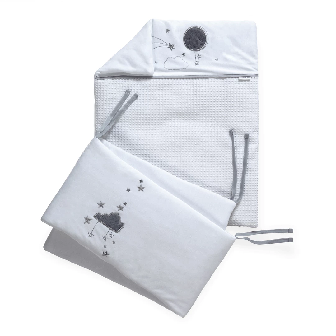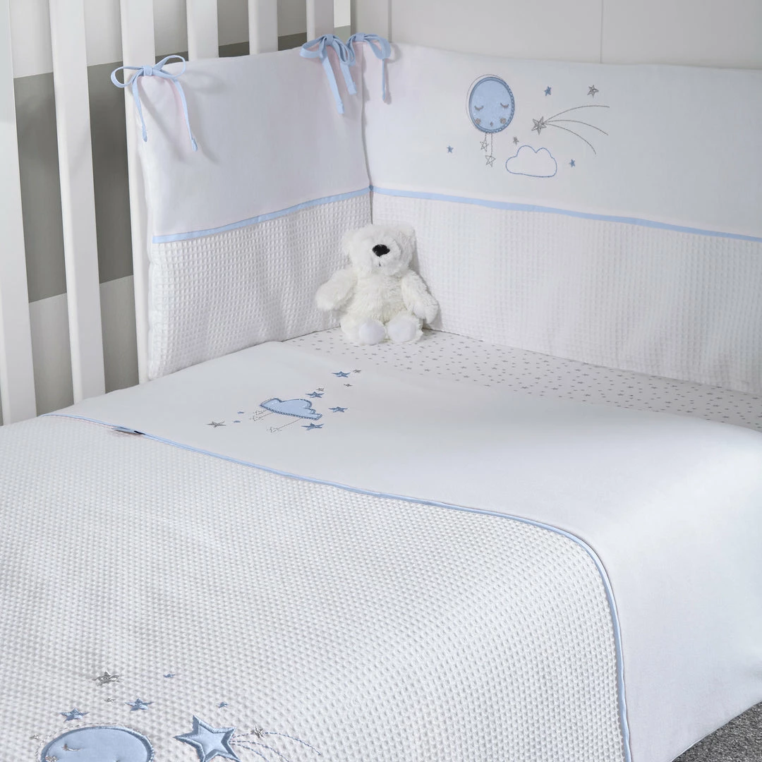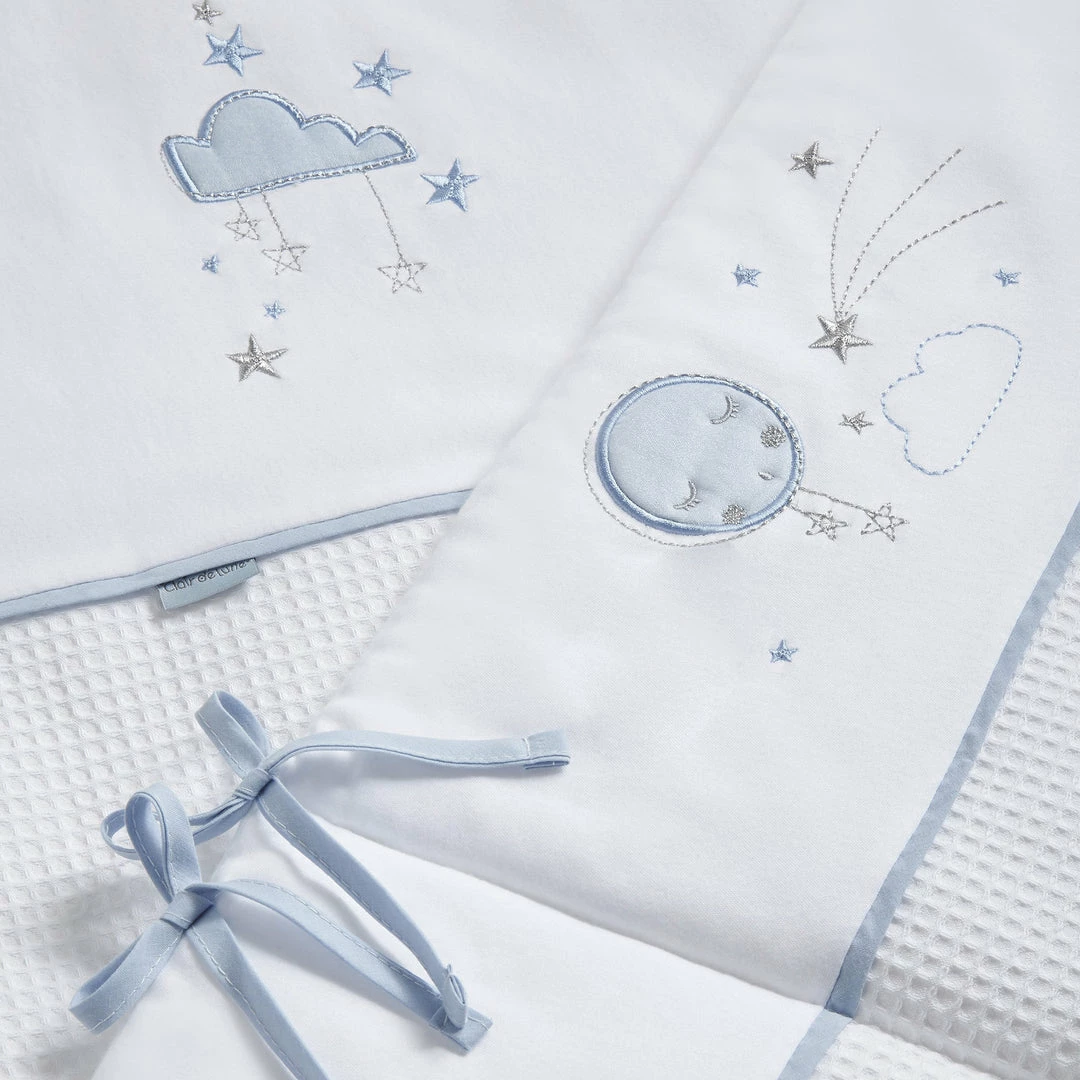 Made with love in Great Britain, the soft Waffle cotton fabrics are super soft, gentle and breathable. Featuring star prints and a sleepy moon with embroidered cloud appliquรฉ for the perfect finishing touch.