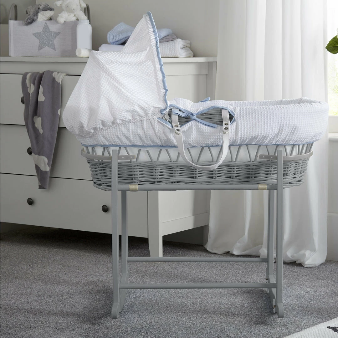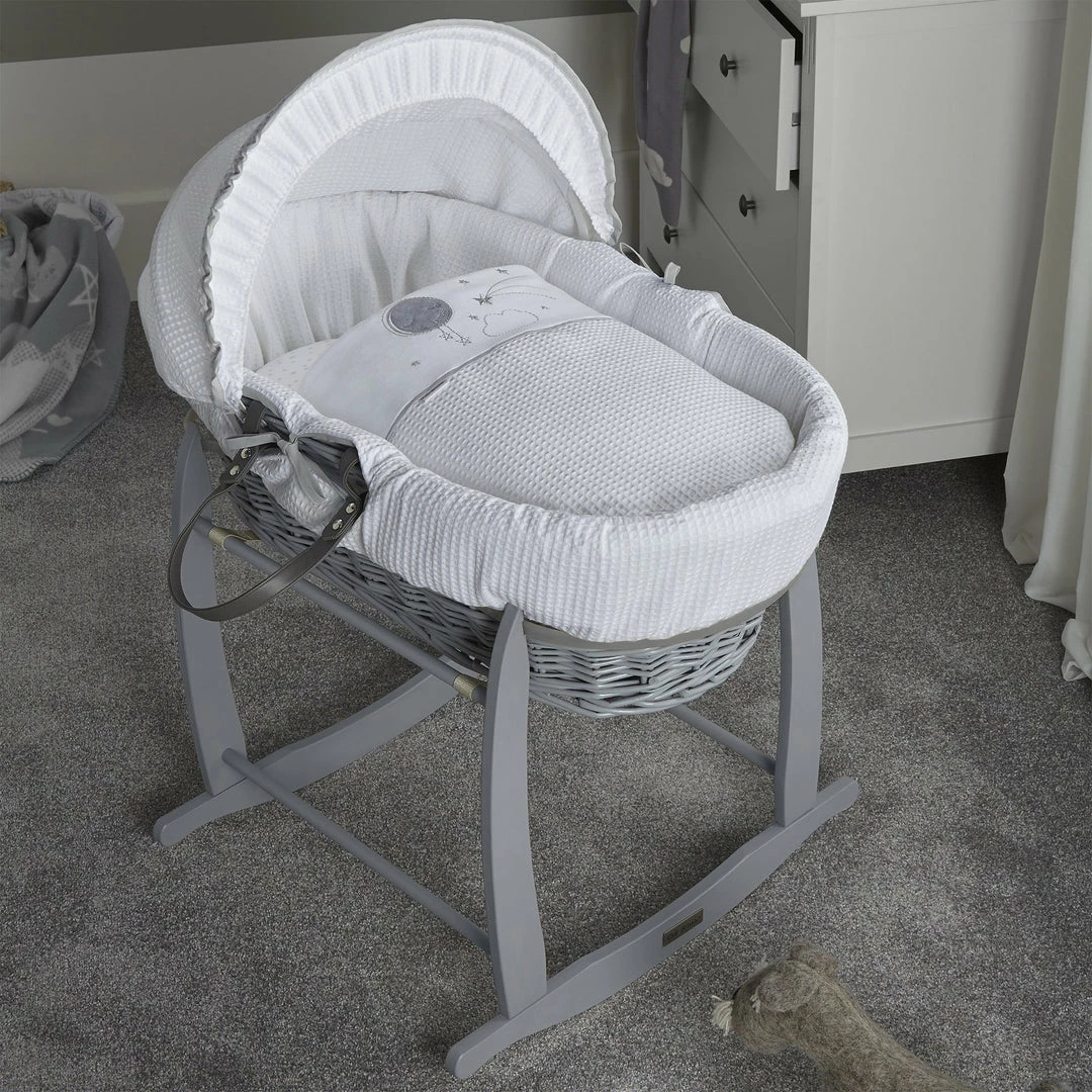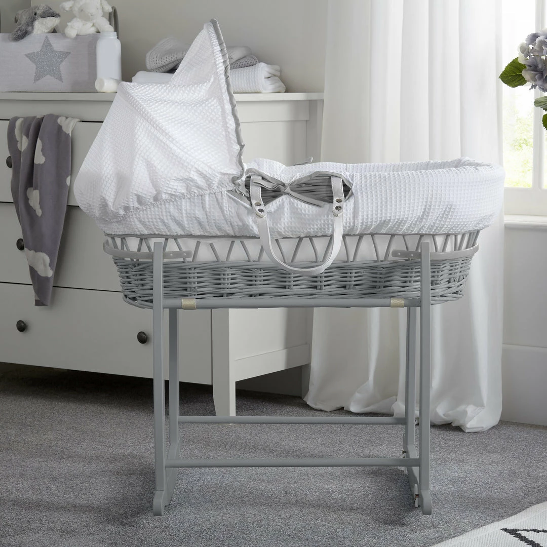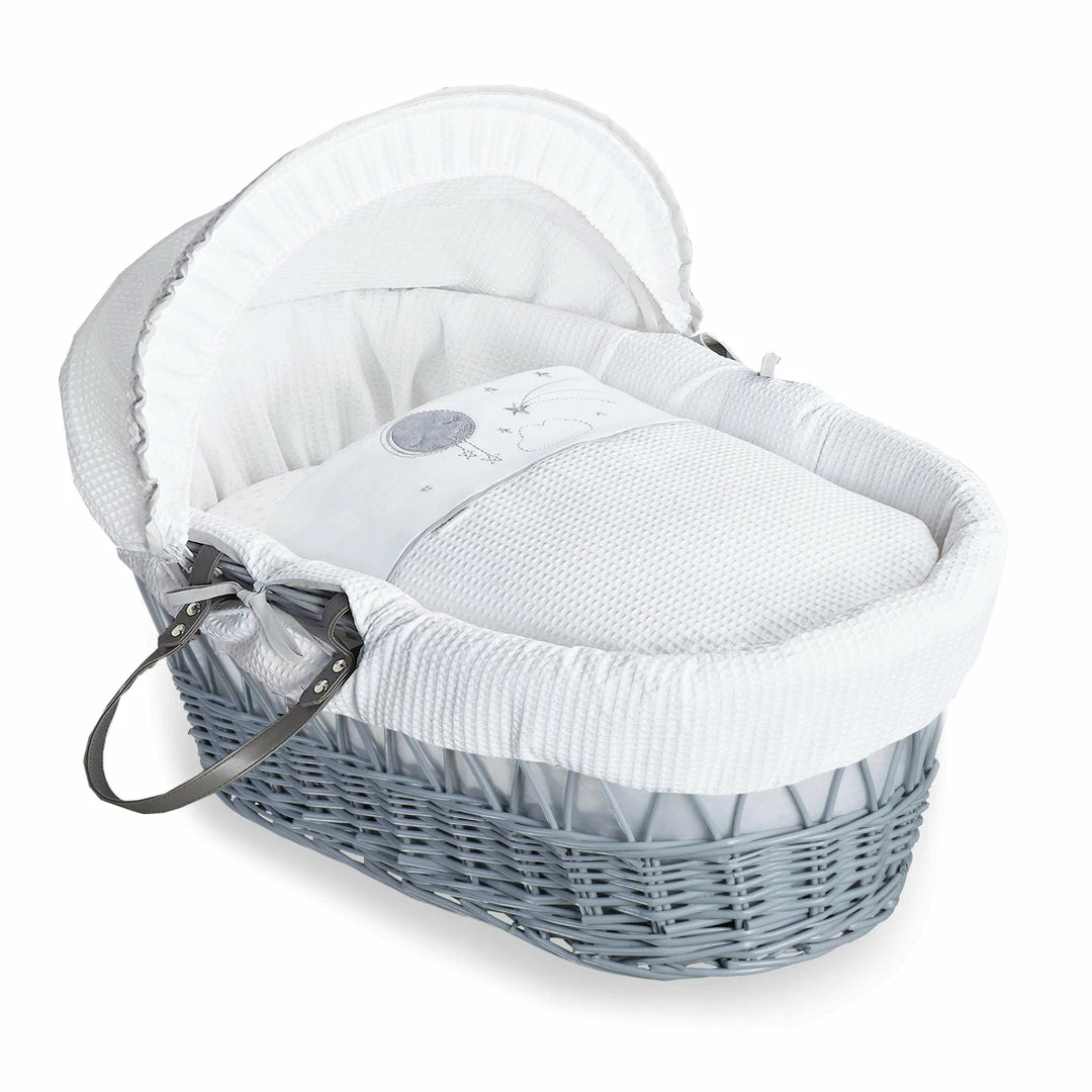 The Moses basket is made from sturdy & lightweight grey wicker and features two carry handles for portability. The adjustable hood makes it easy for you to shade your baby from bright lights during daytime naps.