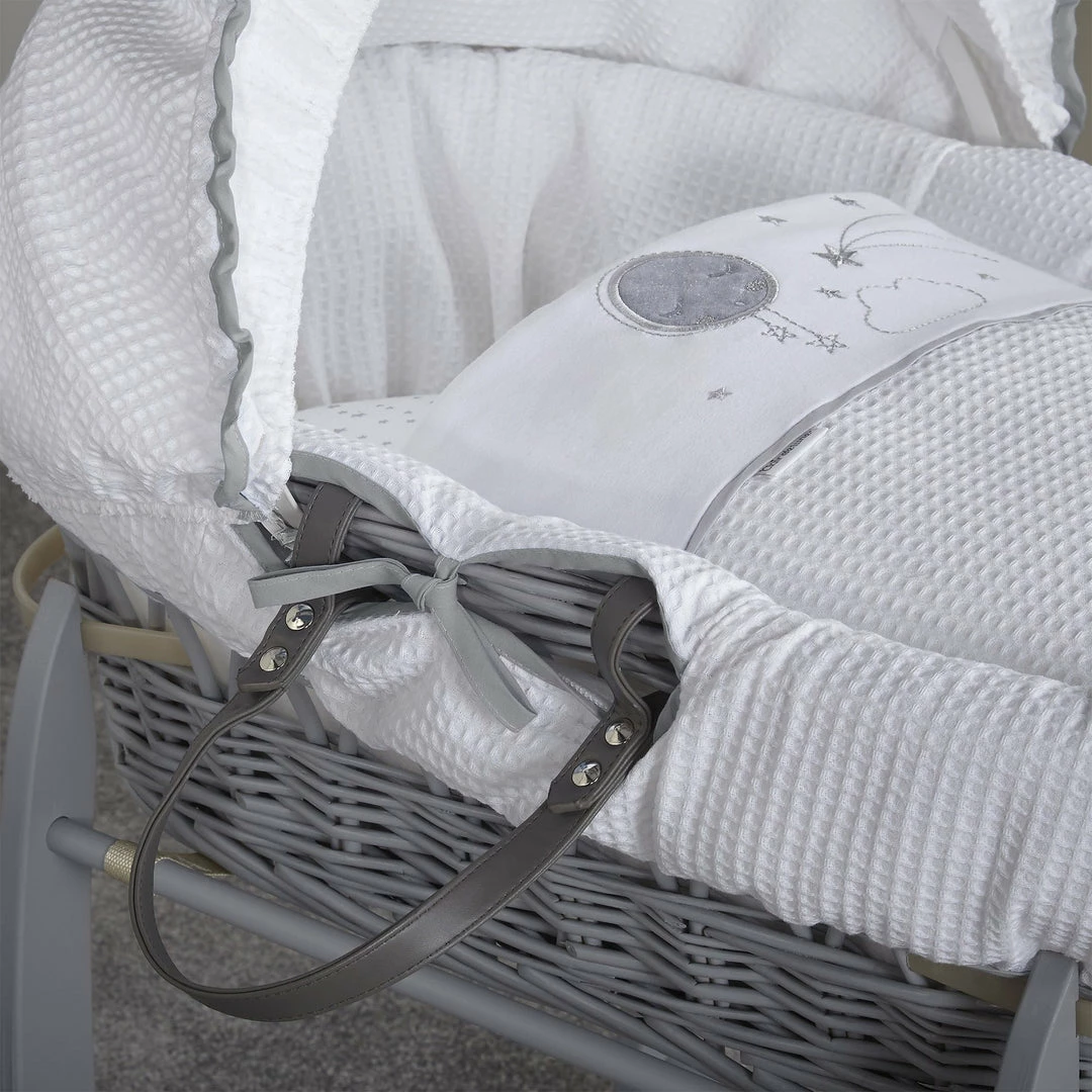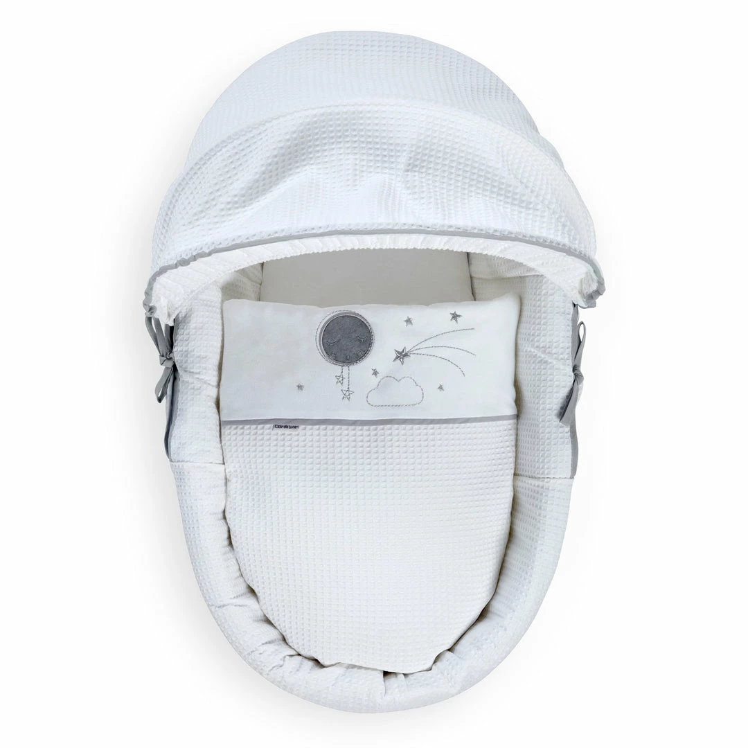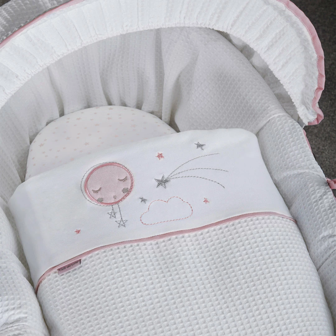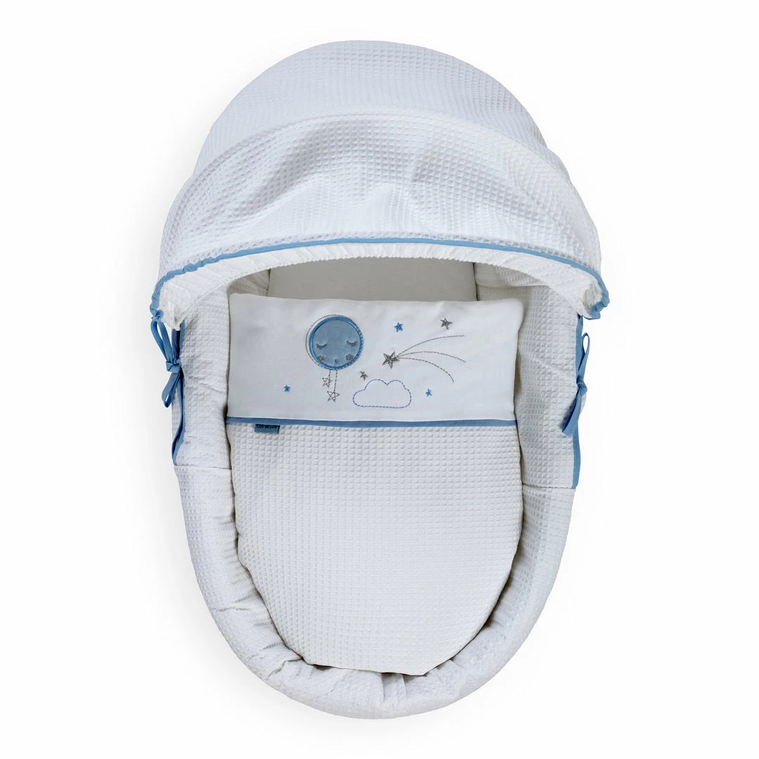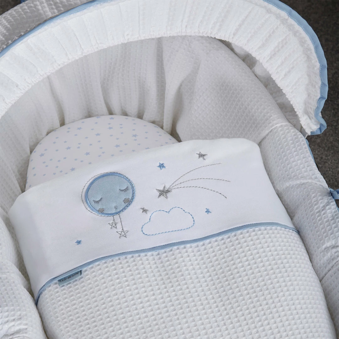 Made with love in Great Britain, the soft Waffle cotton fabrics are super soft, gentle and breathable. Featuring star prints and a sleepy moon with embroidered cloud appliquรฉ for the perfect finishing touch.