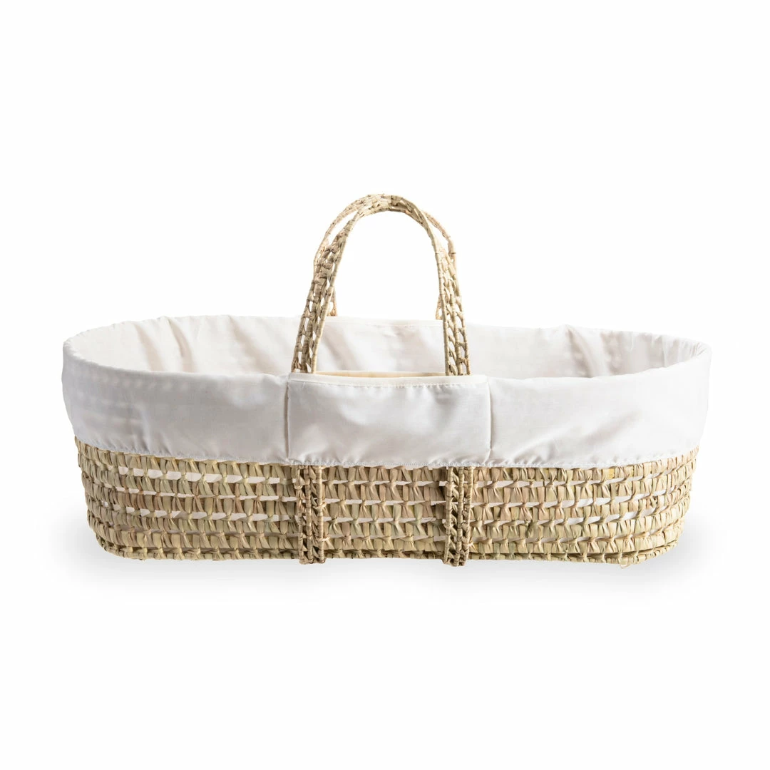 - Handwoven natural palm Moses basket