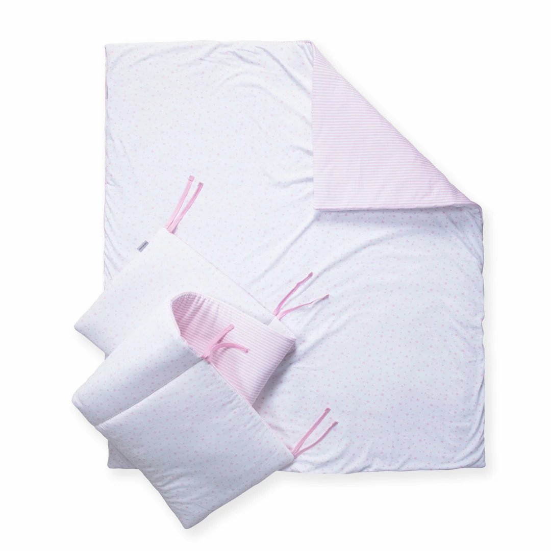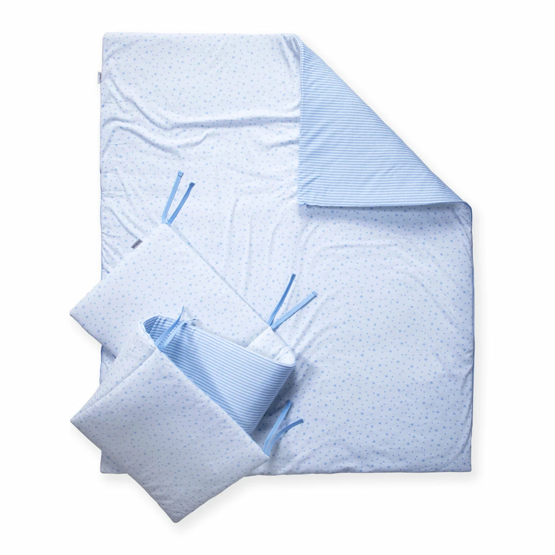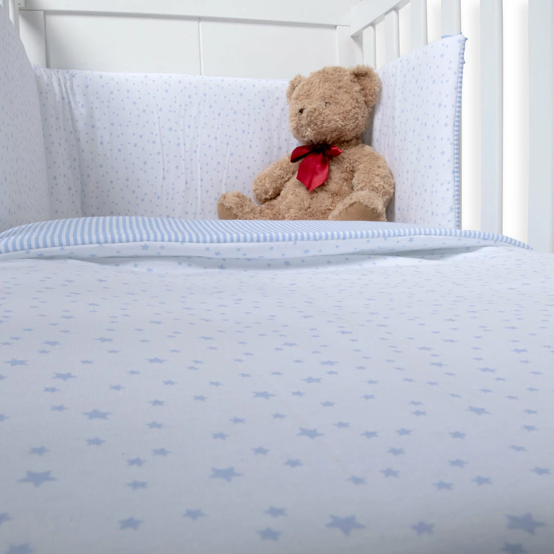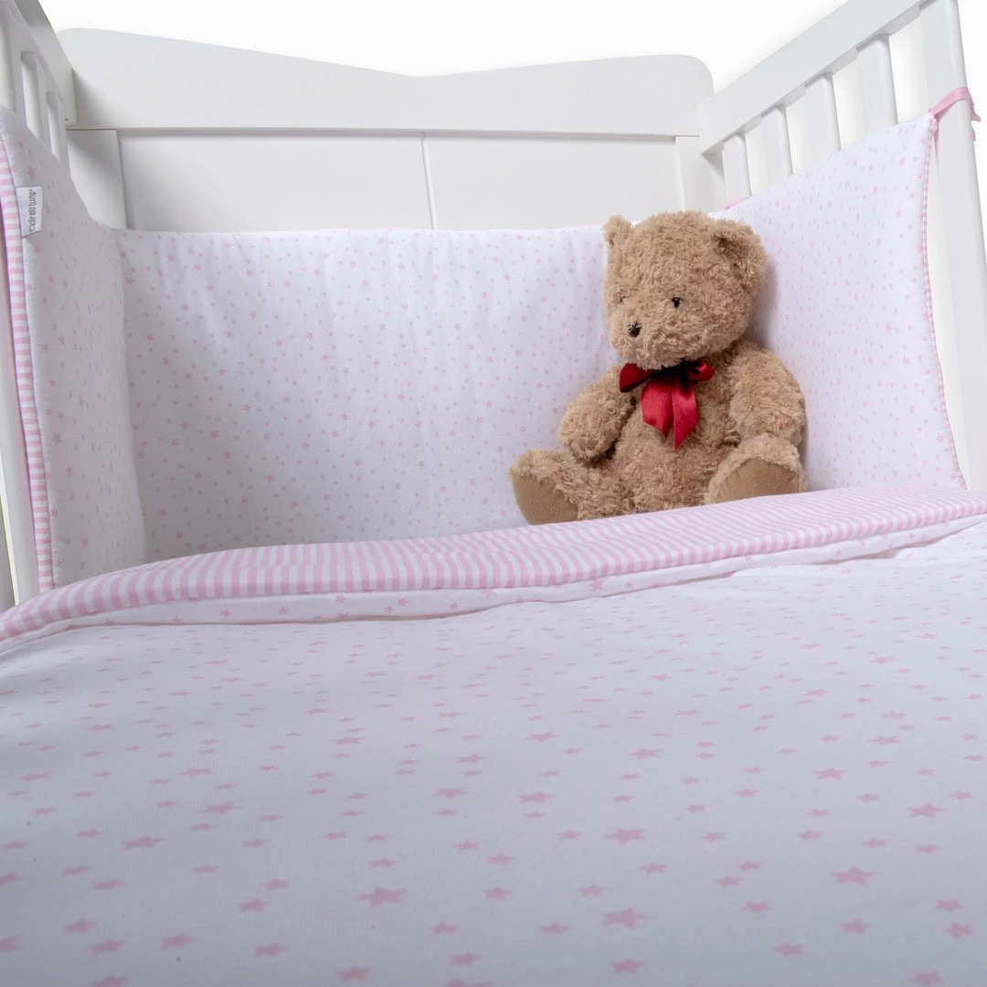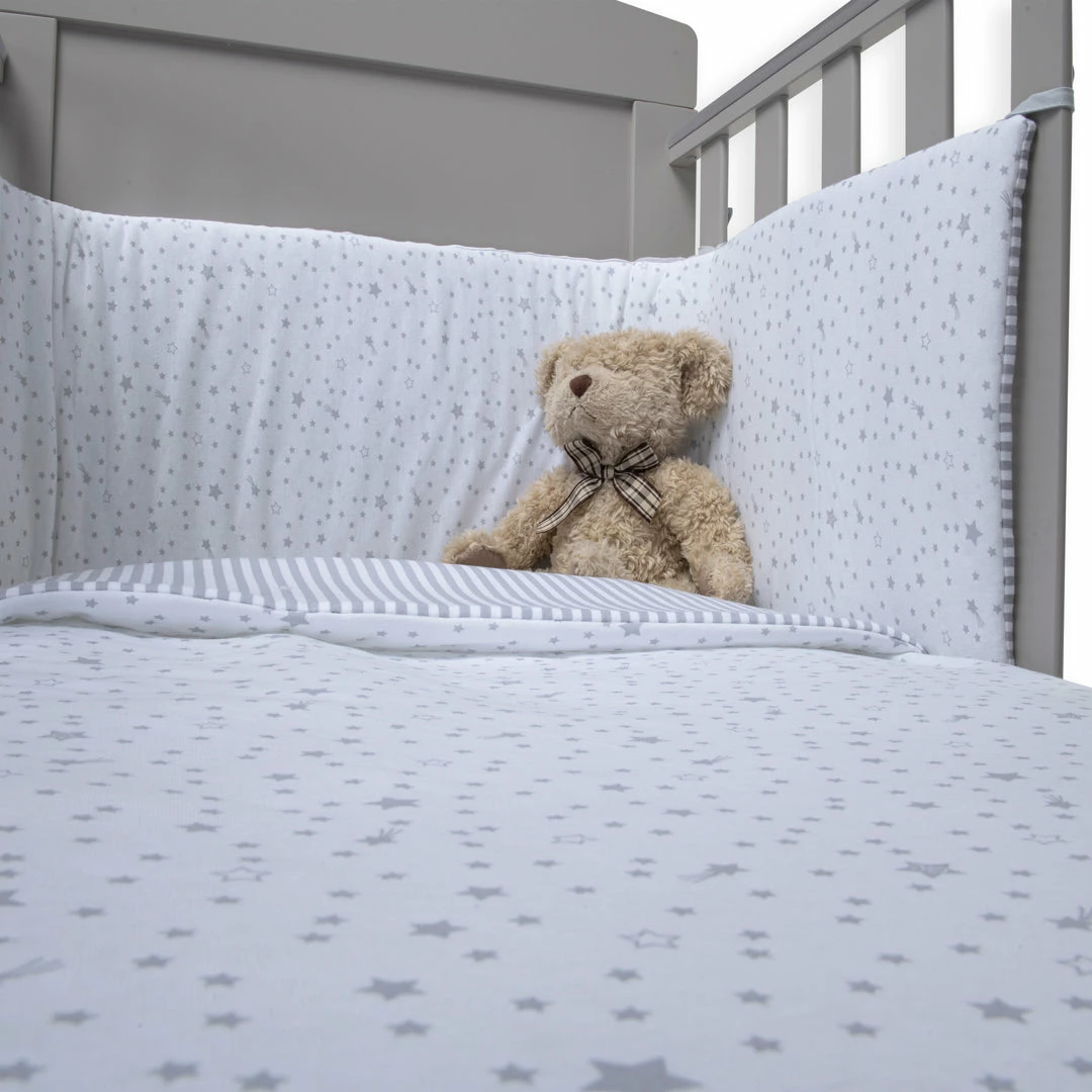 This stylish Stars & Stripes patterned quilt and bumper will complete your nursery perfectly. The subtle reversible print and pastel colour makes for a cosy and calming place for your precious little one to rest.
