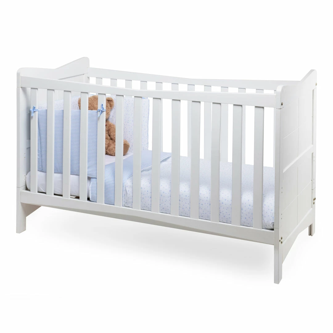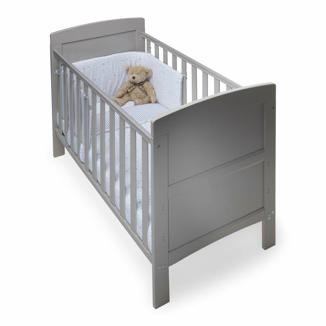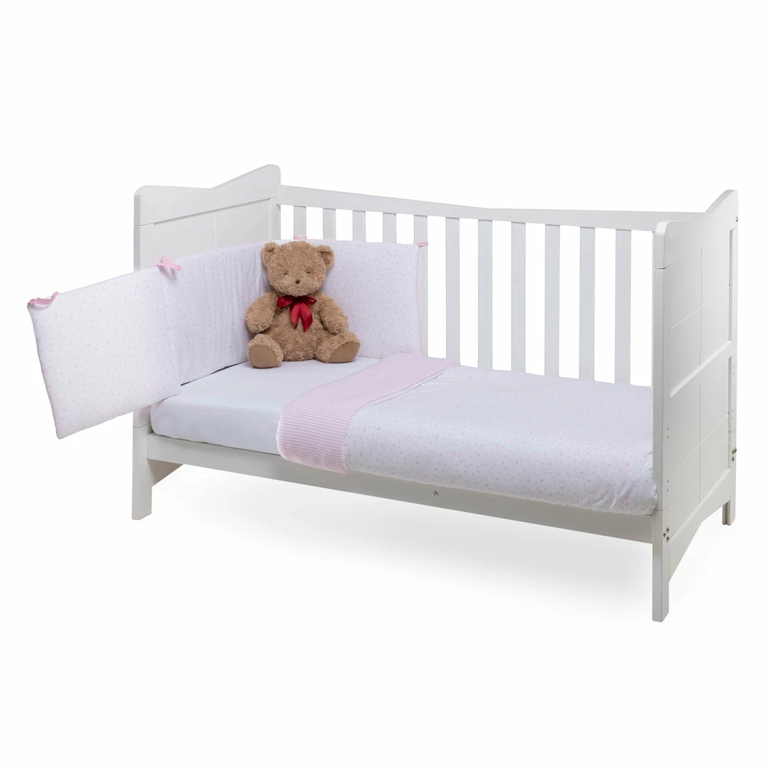 Suitable for cots, cot beds and toddler beds. This Clair de Lune cot bumper is designed to fit most cots; securely tie it to the head of the cot and regularly check that it is securely tied in place. Remove once baby can sit up unaided.