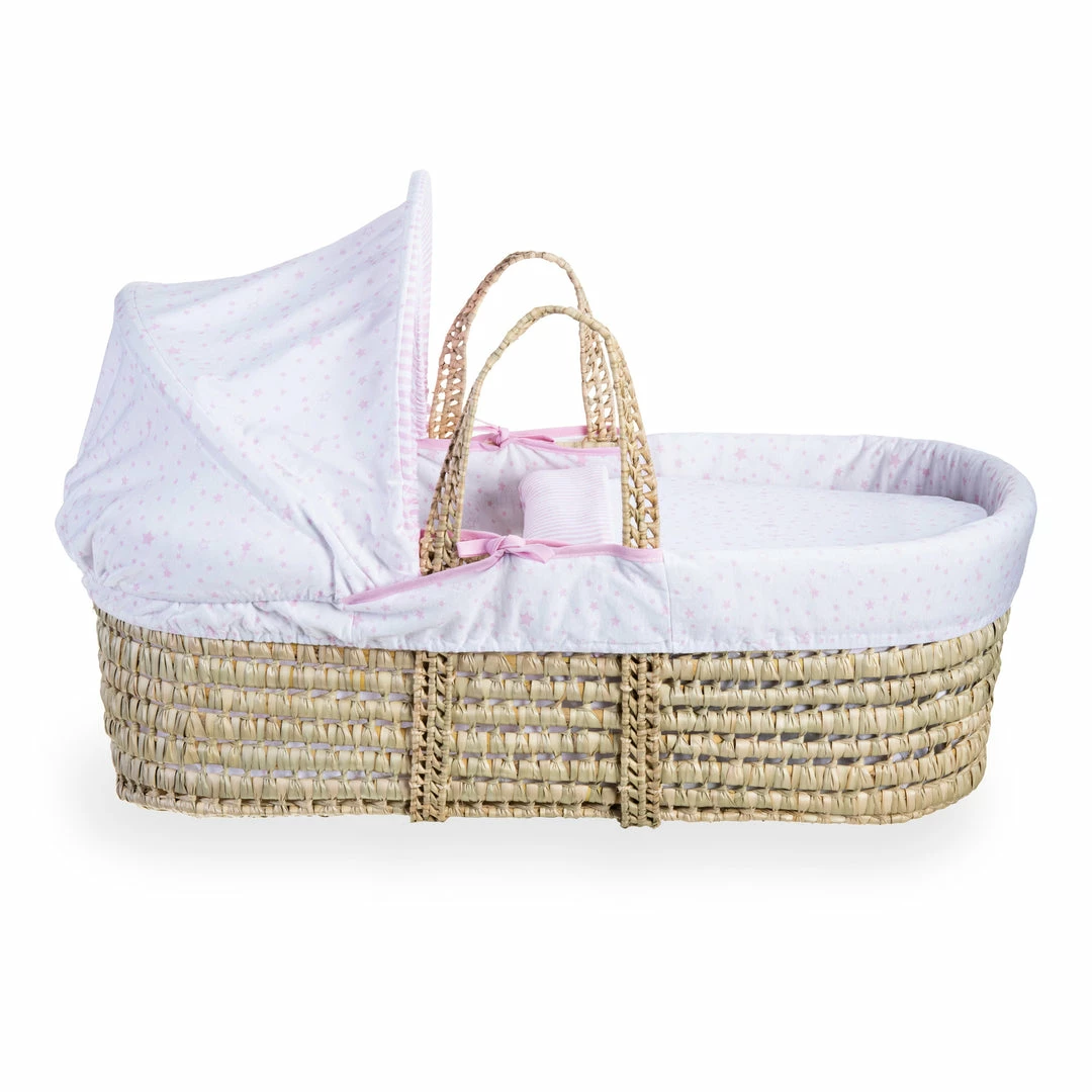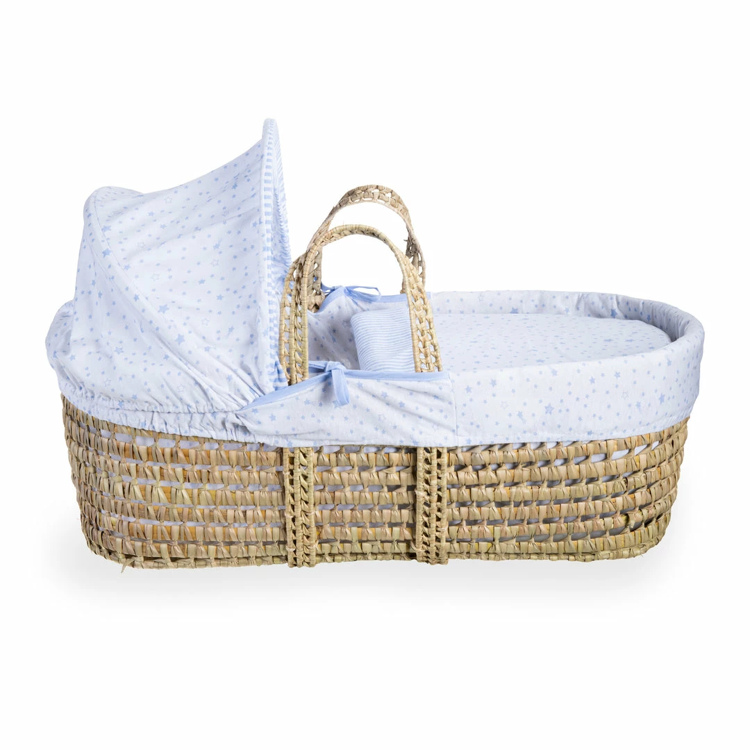 This traditional Palm Moses Basket is lovingly dressed in the UK with the delicate Stars & Stripes fabric, creating a soothing and relaxing sleeping area for your precious baby.