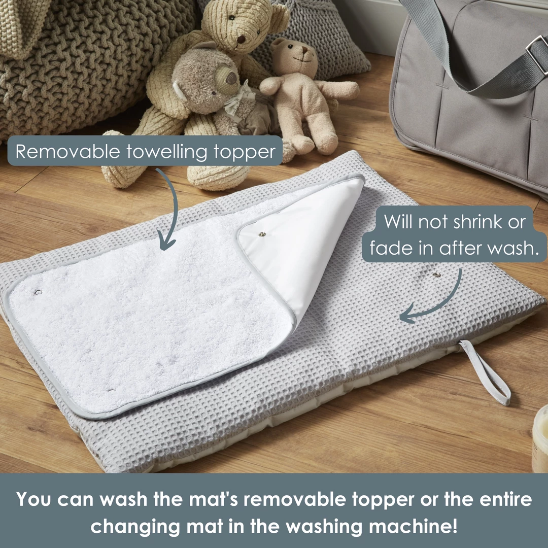 As the changing mat is made from soft-touch Waffle cotton and fluffy terry-towelling it’s perfect for playtime and tummy time!