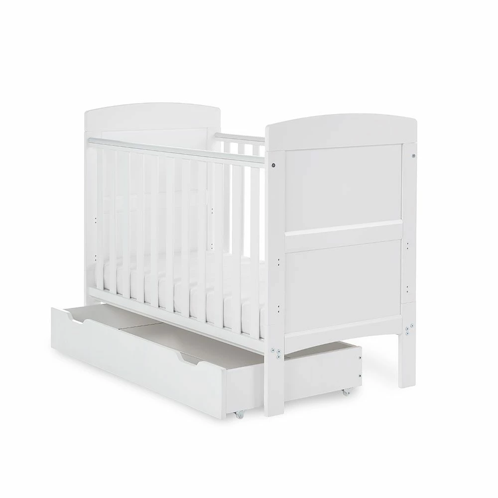 The Grace Mini cot bed features a compact design yet maintains the same valuable features as the full-sized version, perfect for those who love the simplicity and elegance of the Grace cot bed but have limited space.