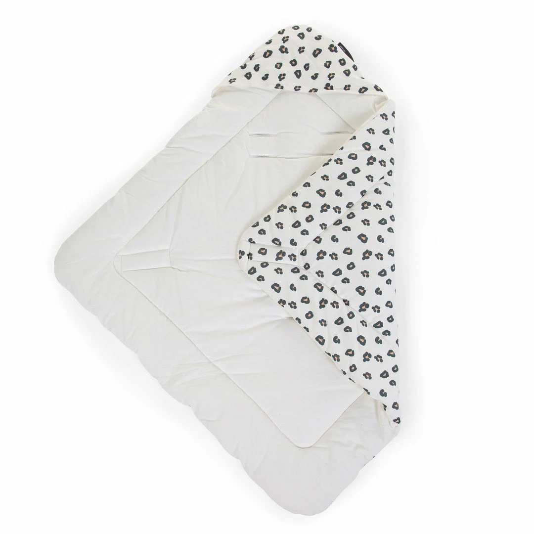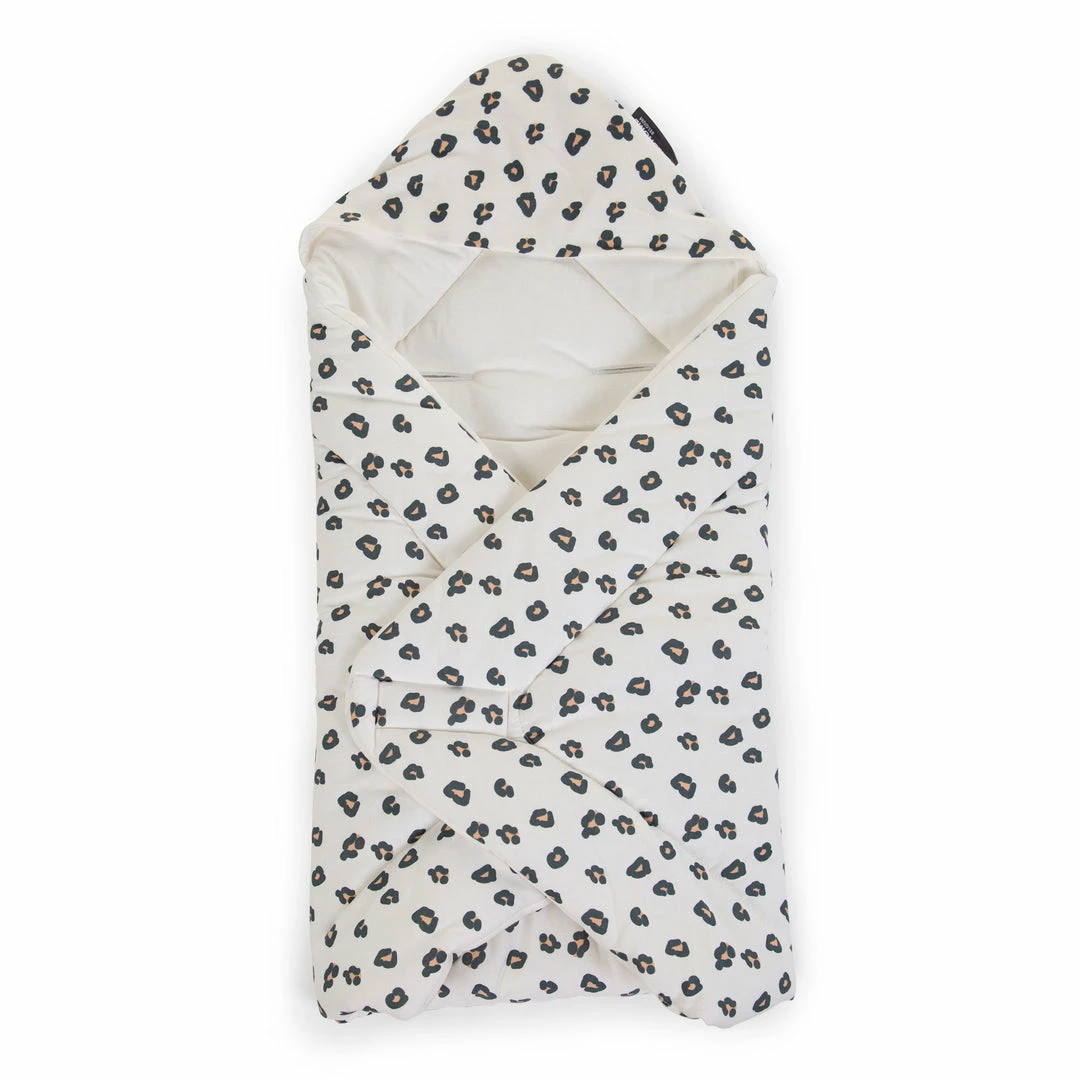 The jersey wrap blanket has a trendy leopard print and is white on the inside. Use the Babywrapper to swaddle your baby comfortably or as a blanket in a bouncer or buggy.