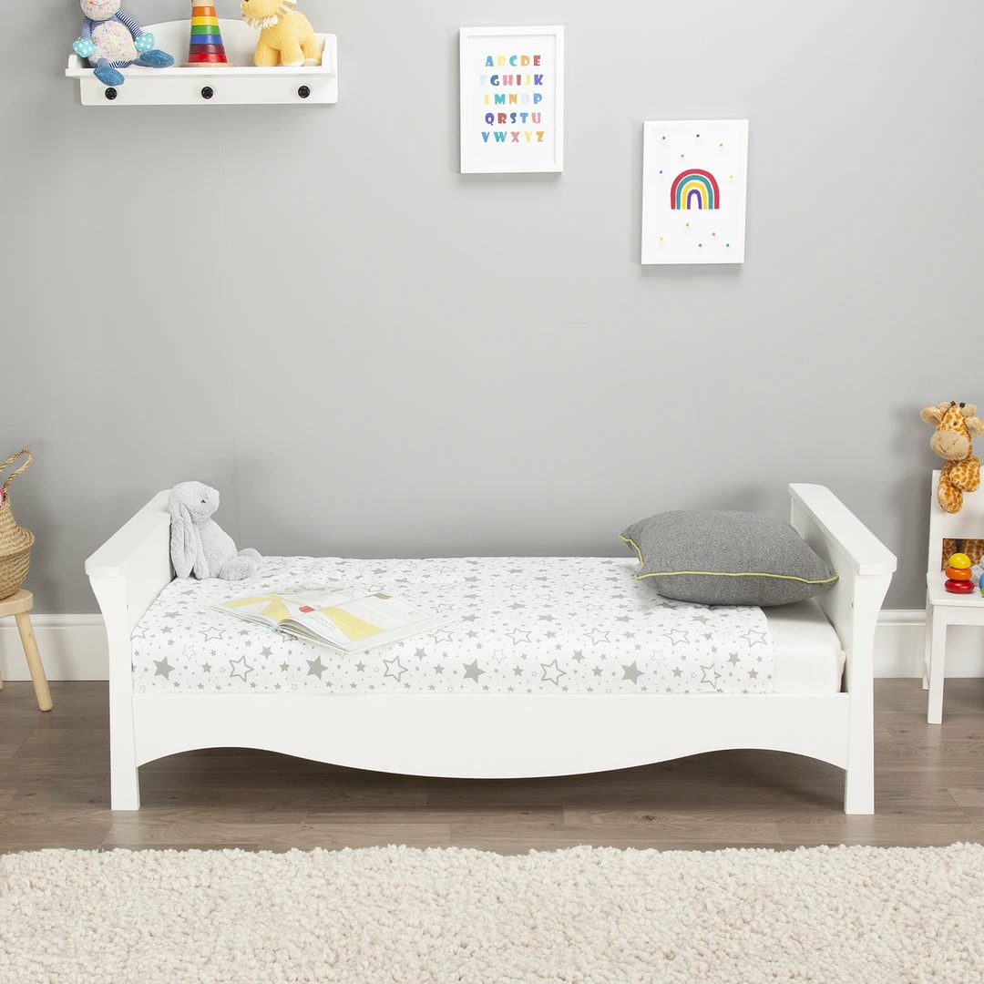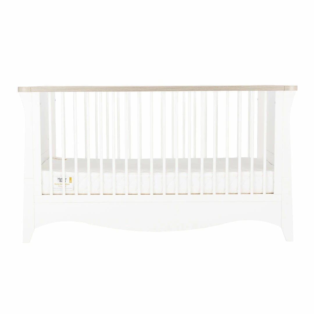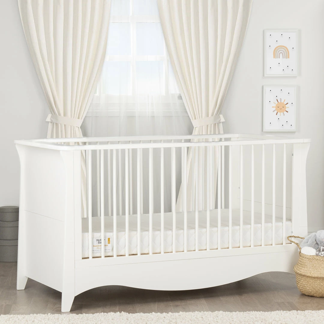 Classic curvature with a modern contemporary look, function and style to transform any nursery. The Clara full size cot bed is suitable from birth to approximately 5 years. Designed with 3 mattress positions, the Clara easily converts into a stylish toddler bed for years of enjoyment.