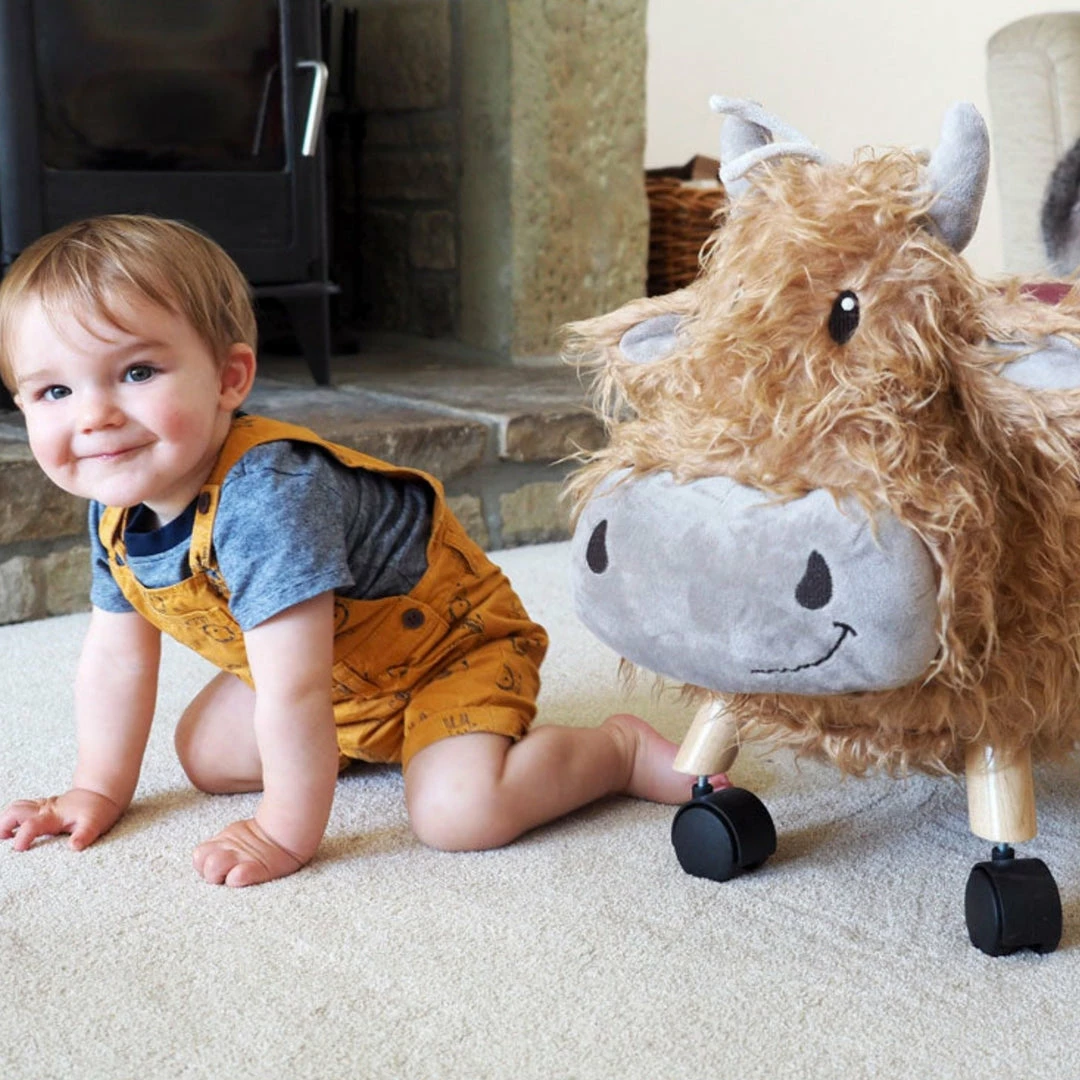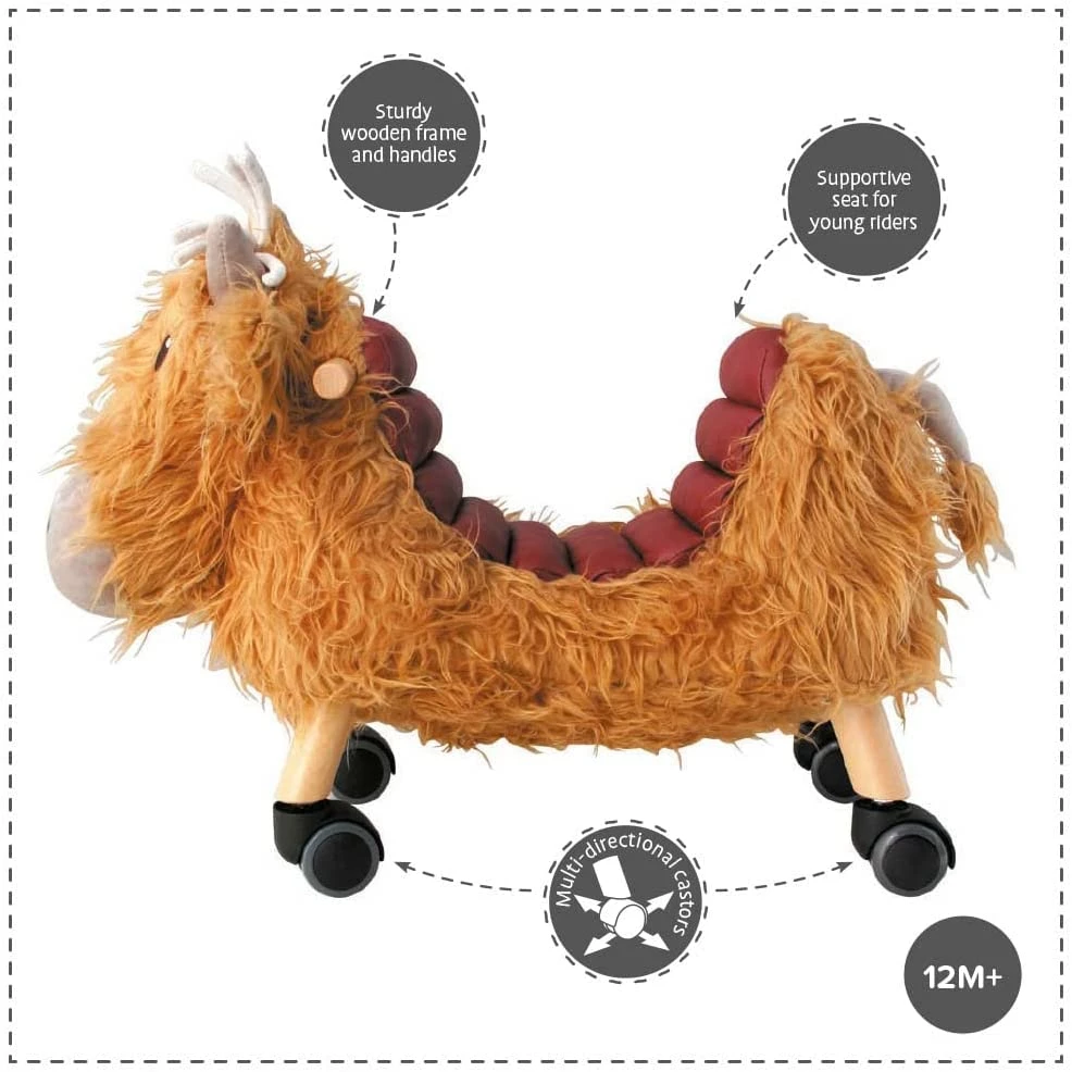 Little ones will fall in love with this cheeky chappie as he takes them on imaginative adventures! An innovative wheeled ride-on toy with multi-directional castors, Hubert is a highland cow with long horns and a flowing coat. He boasts a stylised curved padded leatherette seat, providing a supportive and comfortable ride for little ones hoping to scoot from place to place.