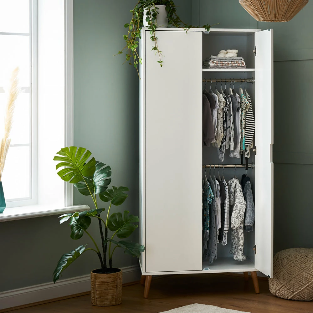 Putting style and functionality at the forefront, the stunning double wardrobe offers the ideal storage solution for your little oneโs clothes. The large cupboard space features two hanging rails and a single full-width shelf, all fronted by double soft-close doors with recessed handles.