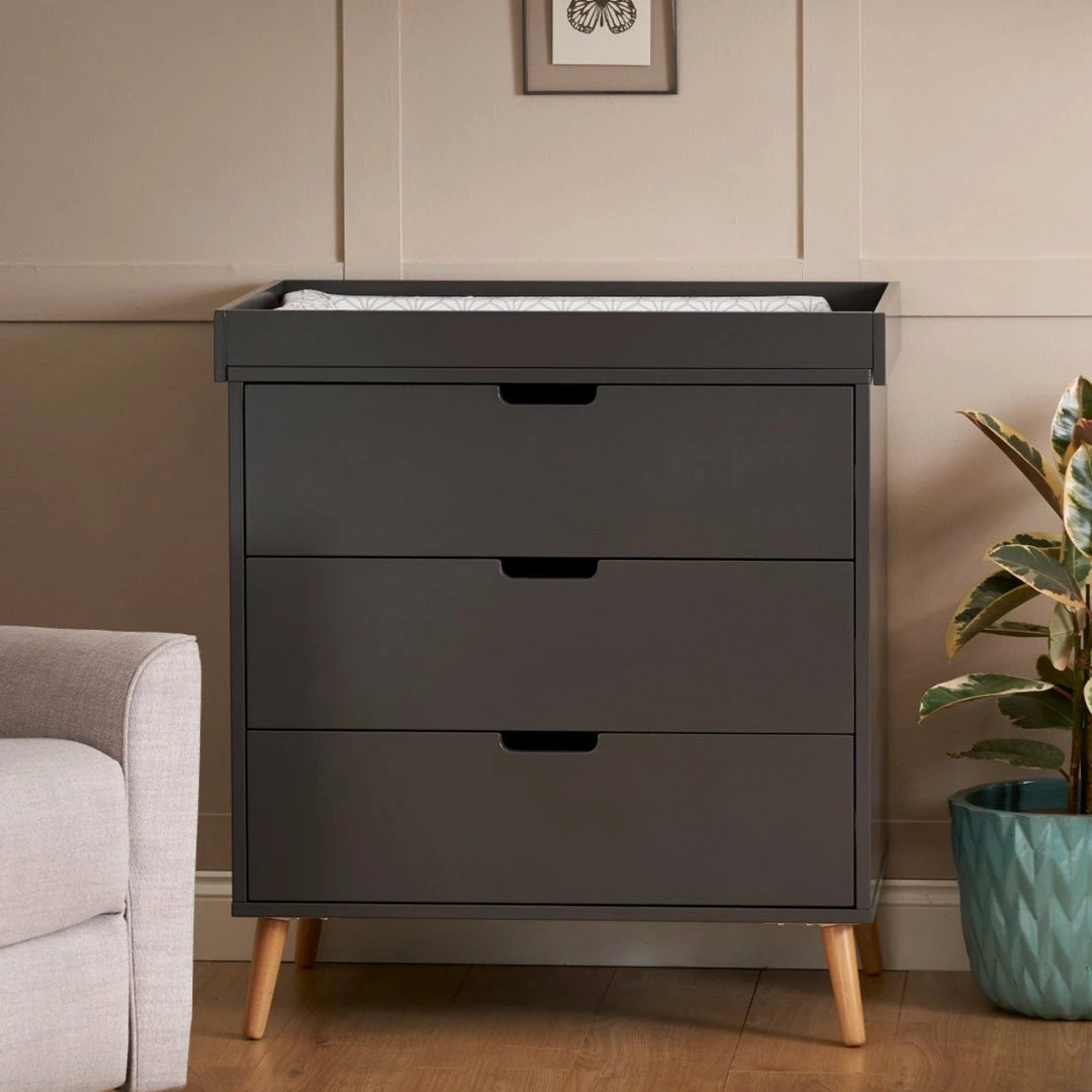The Maya changing unit is the perfect storage companion, featuring three 34L capacity drawers with recessed handles, enabling you to easily put away and quickly locate your little oneโs belongings.