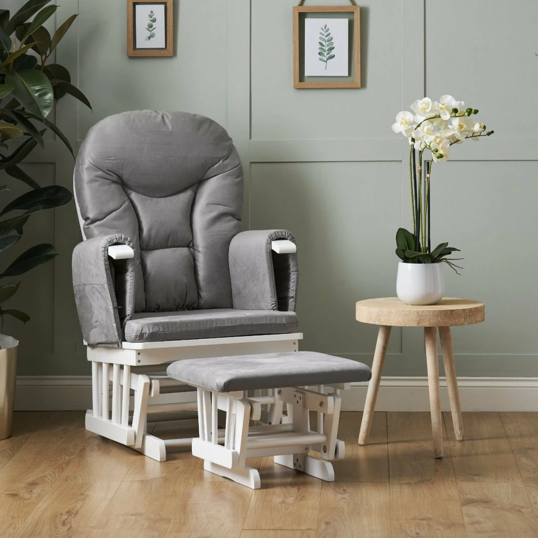 The Obaby reclining glider chair is the perfect place to rest and relax with your baby in comfort.ย No matter what the occasion, be it feeding time or reading your little oneโs favourite book, the gentle gliding motion helps you unwind whilst also soothing your tot to sleep.