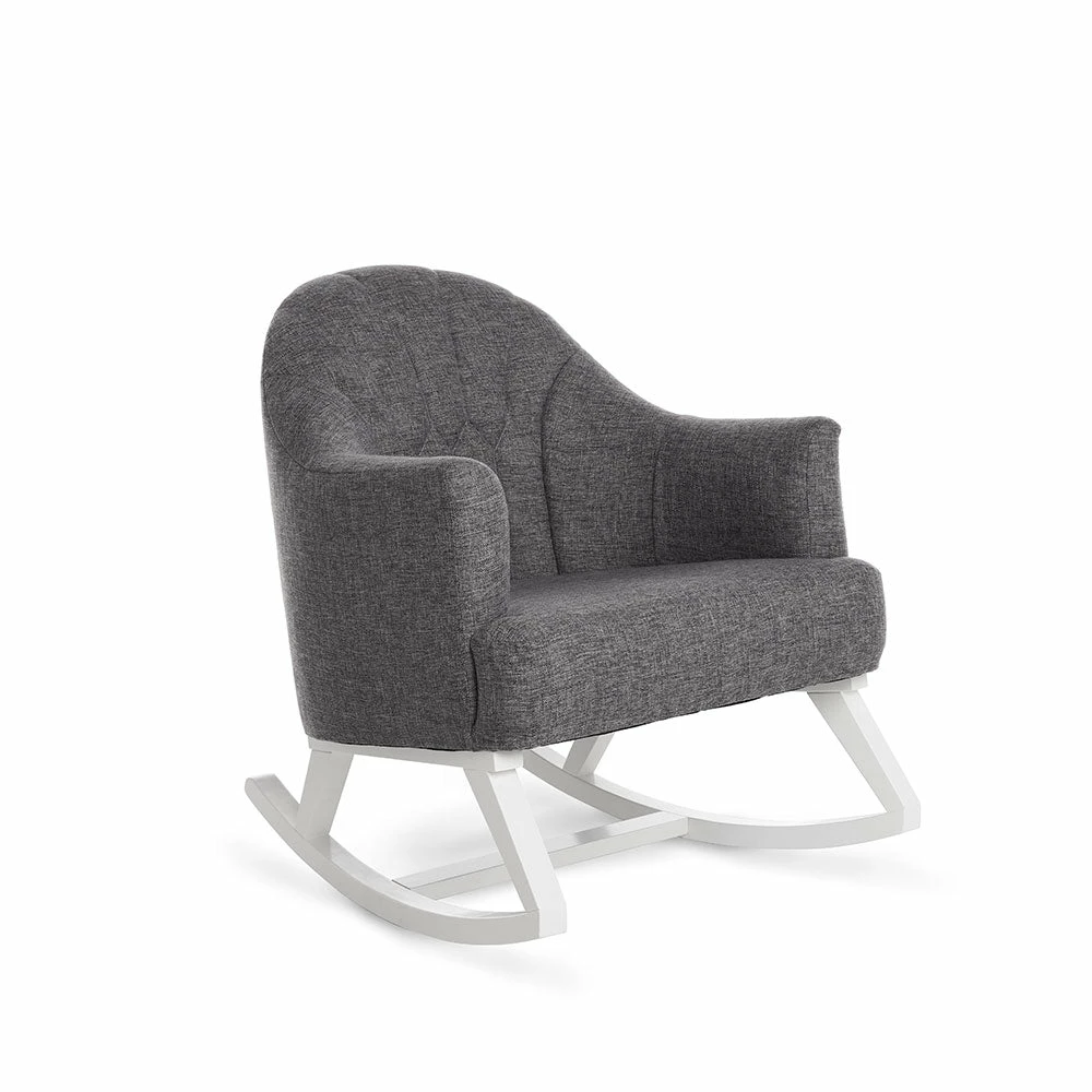 The solid wooden frame provides long-lasting support while the deep foam seat and back cushioning envelope you, providing maximum in comfort. The Obaby round-back rocking chair is designed to fit into any nursery setting due to its soft and durable woven upholstery in a neutral shade of oatmeal.