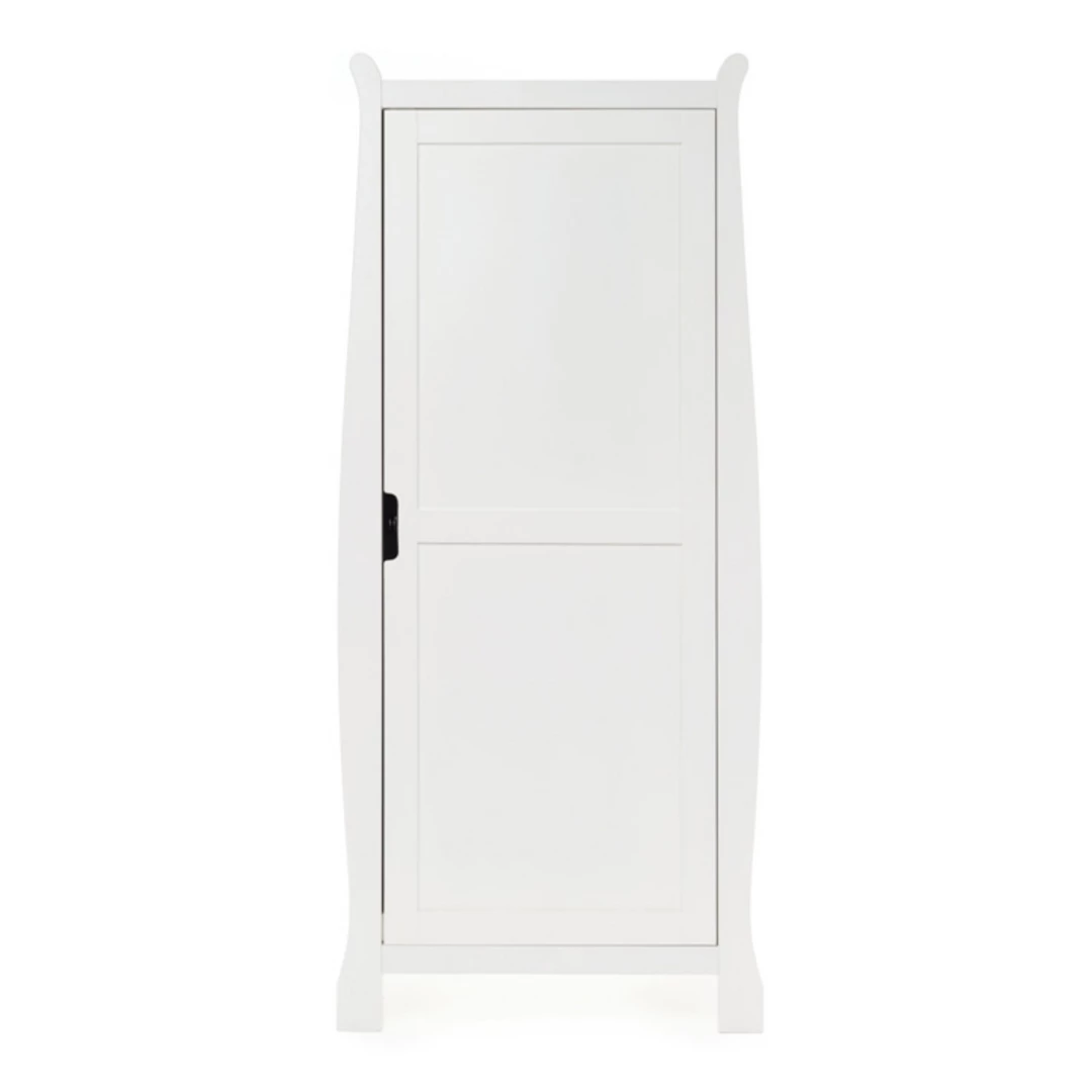 Completing the ultimate space-saving nursery set is the Stamford single wardrobe. A full height, soft close door with a recessed handle encloses the cupboard section with two sturdy, internal hanging rails for storing little onesโ adorable outfits.
