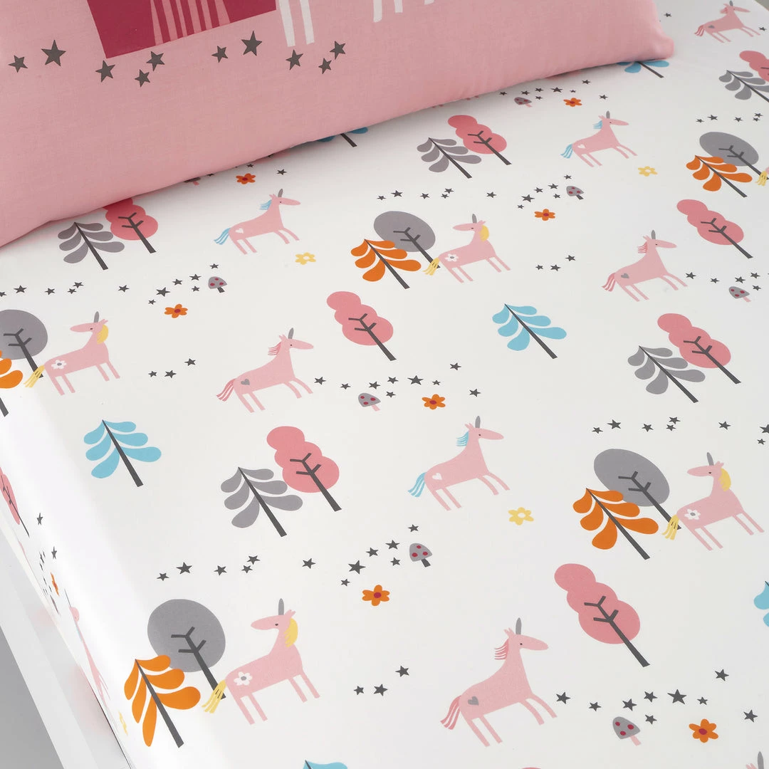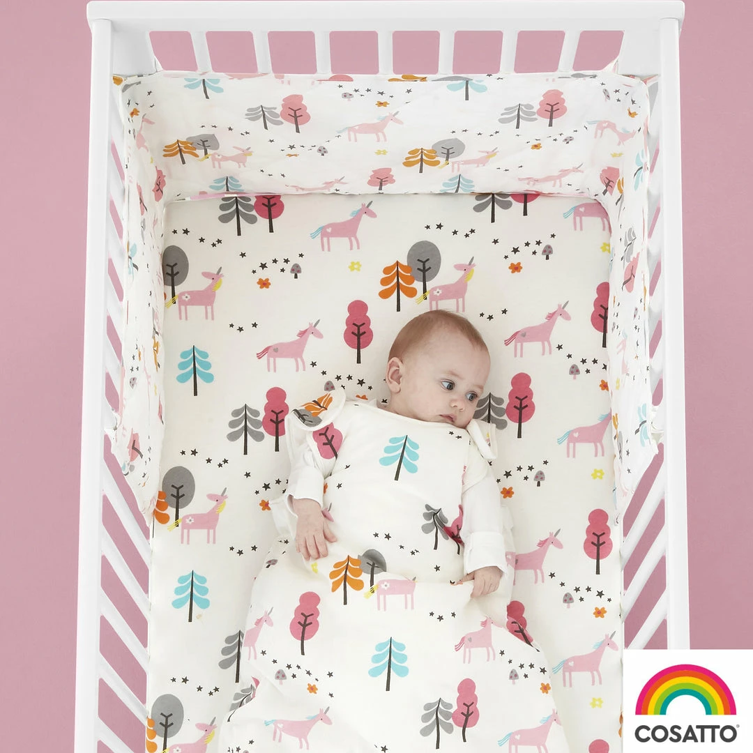 Tiptoe beneath the moon with the noblest, sweetest unicorns ever. This twin-pack of fitted sheets from Cosatto features pink unicorns in an enchanted night forest.